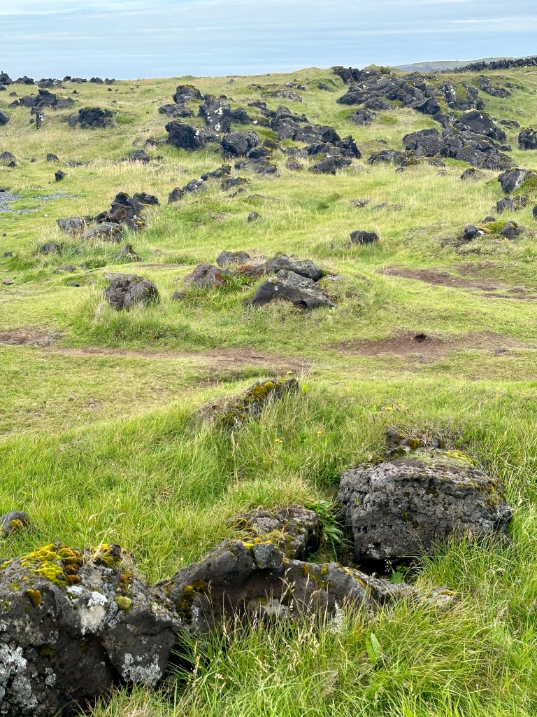 The peninsula’s lower reaches are dotted with miniature wildflowers, ground-hugging plants whose tiny blossoms break up the black lave and green scrub grass with flashes of yellow, blue, white, and other hues that my color-blind eyes cannot reliably identify. It’s a nature-lover’s paradise.