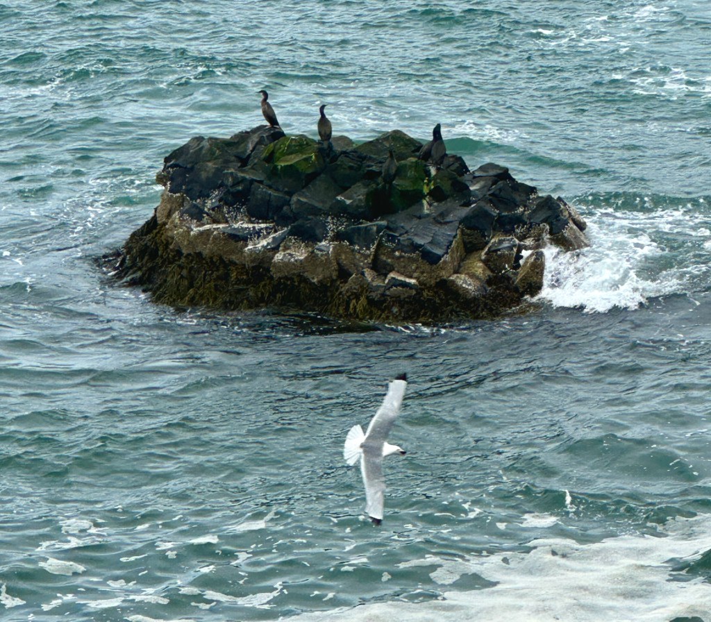 The statue rests on a cliff that serves as a nesting ground for millions of raucous gulls and a few cormorants keeping their own counsel. The waves and rock formations here are even more impressive than those by the lighthouse.