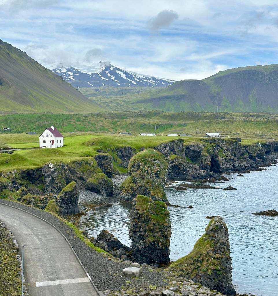 From Kirkjufell, we headed deeper into the peninsula, driving around another famous Icelandic mountain, Snæfellsjökel (“jokel” means glacier). In Icelandic mythology, this mountain hid a portal to the center of the earth, leading Jules Verne to use it as inspiration for his book.