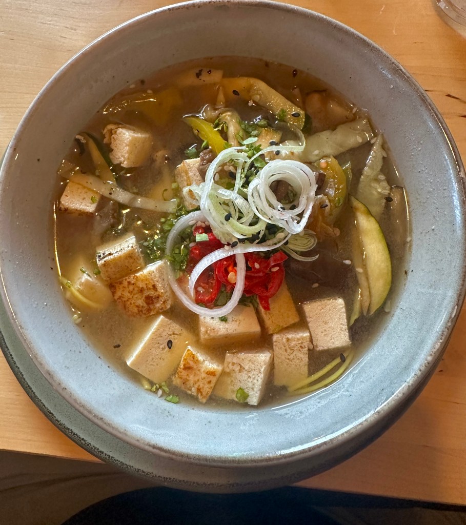 I enjoyed a scrumptious bowl of ramen with tofu and vegetables and a passable Icelandic whiskey. Tired, well-fed, and wowed by a day of gorgeous scenery, I’m writing this on the bus back to our hotel in Bogarnes. Stay tuned!
