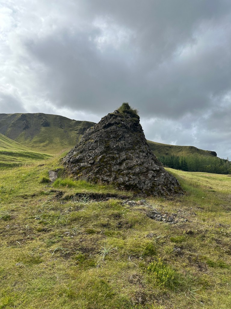 Kirkjugolfi (suggested soundtrack: The Christians and the Pagans, by Dar Williams; it’s a great song – give it a listen if you don’t know it). Legend has it that the land at Kirkjugolfi carries a curse under which any pagan (non-Christian) will die upon entry. There’s a large grave mound called Hilishaugur, under which one Hildir Eysteinsson supposedly is buried. He was a pagan who, ignoring the curse, came onto the land of Ketill, a Christian hermit from Ireland. Perhaps the curse has been lifted, because our entire group, Christian and non-Christian alike, emerged hale and hearty.