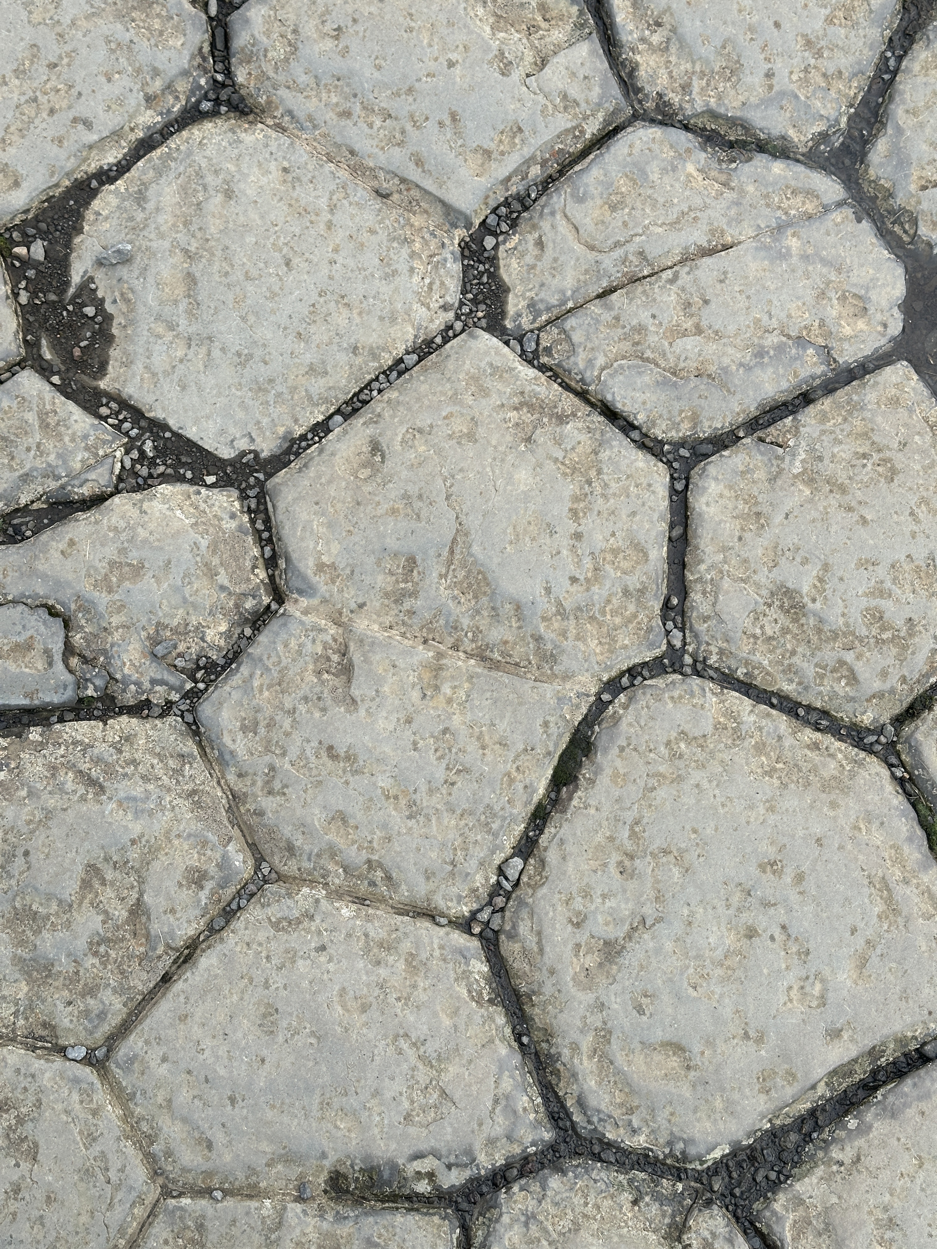 It’s a windswept, austere spot. The wall of majestic columns remind me of the Giant’s Causeway in Northern Ireland. They’re interrupted by a cavern of sorts that offers a bit of shelter from the storm (another possible addition to the soundtrack (“blackness was a virtue, the road was full of mud … men are fighting to be warm”).)