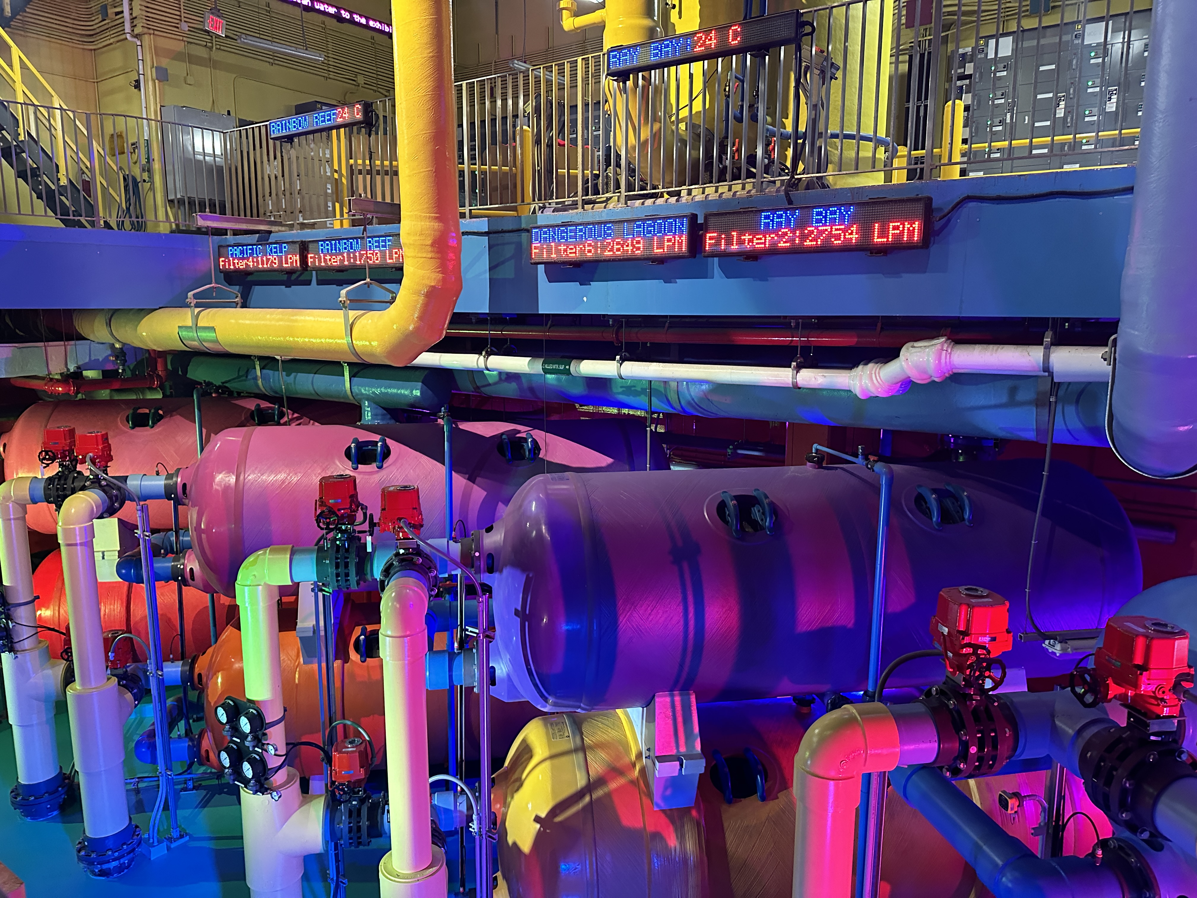 One of the final rooms (before the ubiquitous gift-shop-you-must-walk-through-before-exiting) houses a fascinating array of pumps, pipes, filters, and monitoring equipment – a behind-the-scenes look at how the aquarium works, which I haven’t seen elsewhere.