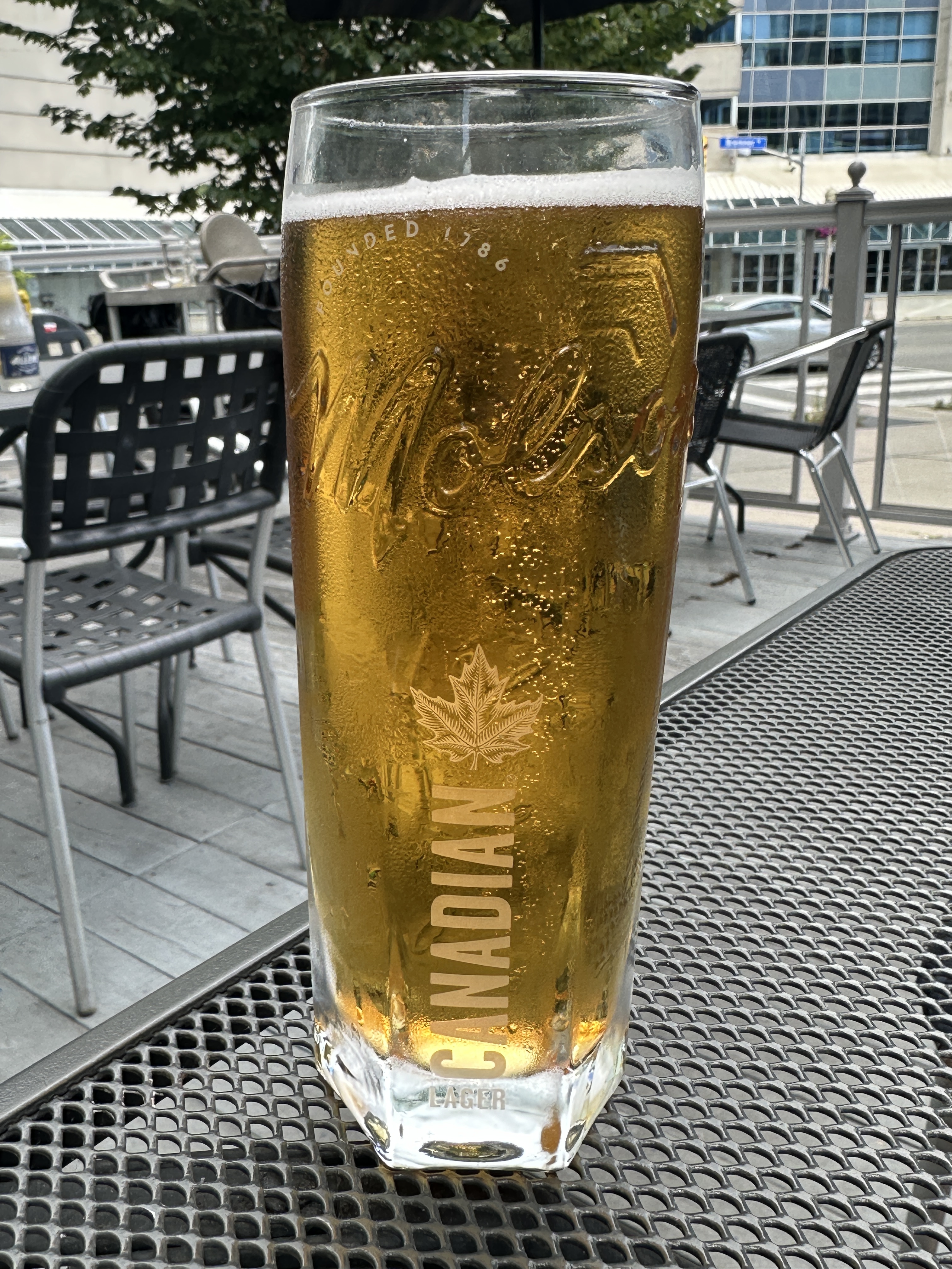The food trucks looked fantastic, but we made the mistake of eating breakfast at a Tim Hortons before we went. TH might be a Canadian institution, but breakfast was disappointing. if I had it to do over again, I’d’ve skipped breakfast and feasted on banh mi tacos or Indian fusion from one of the food trucks, washed down with a beer from … Cowbell Brewing Co. (Someone goofed big-time; how is their slogan not “More Cowbell”?!) I didn’t try a Cowbell, but I did have an excellent lager from Creemore, a local brew with a beautiful golden color. Neglecting one of the cardinal rules of travel blogging, I didn’t take a picture, so here’s a photogenic but anodyne Molsons.