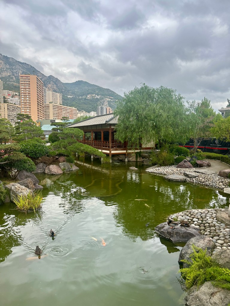 The Jardin Japonais. Also nearby are several gardens. Yesterday I strolled through the small park across from the casino, a lush spot popular with seagull-sized dogs and dog-sized seagulls. Today I visited the Jardin Japonais, located behind the casino at 5 Av. Princesse Grace.