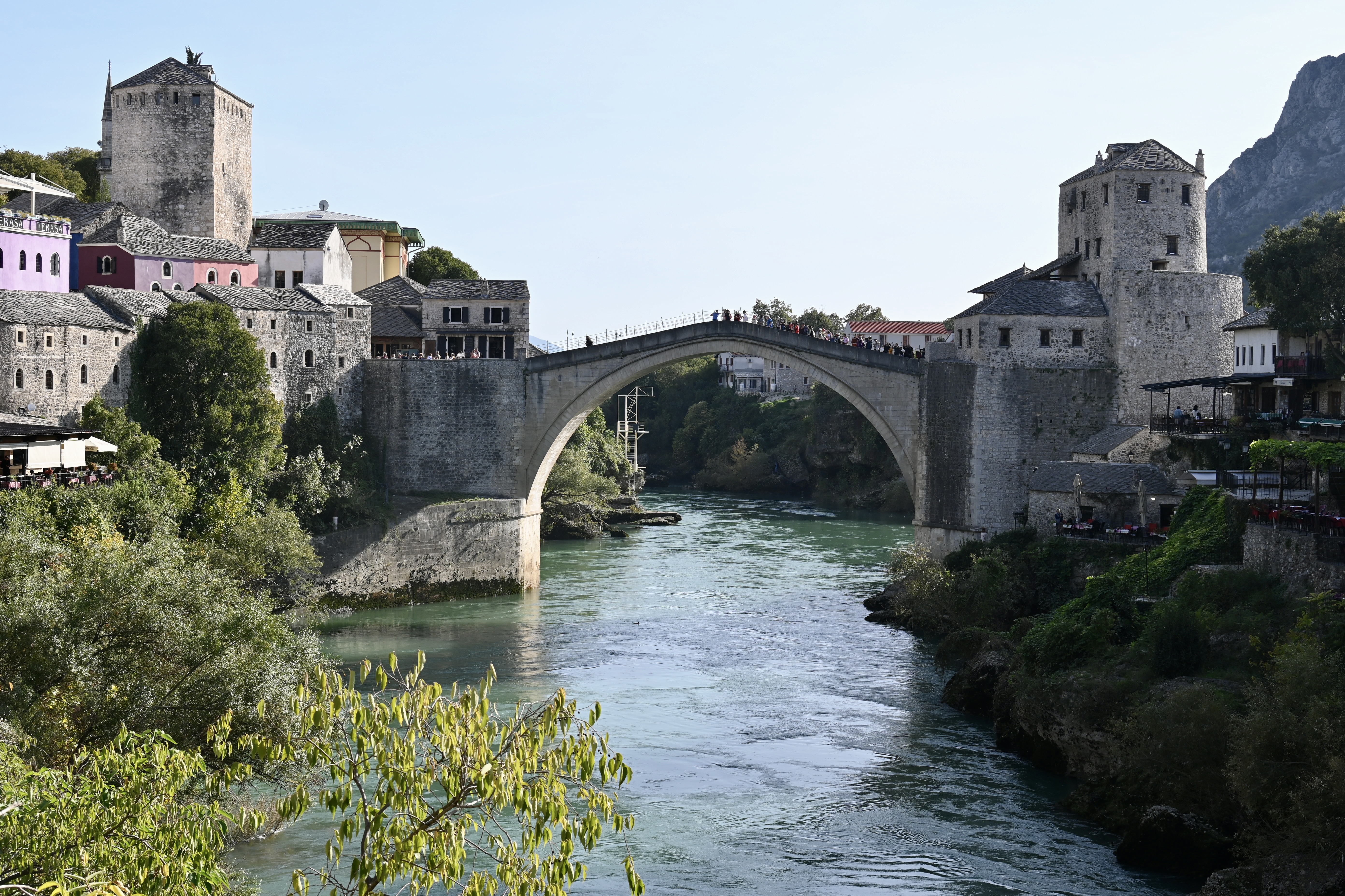 The bridge, a UNESCO World Heritage Site, was commissioned by Suleiman the Magnificent and built in 1566. Unfortunately, the bridge, like 90 percent of the surrounding city, was destroyed during the Yugoslav wars during the early-to-mid 1990s. It was rebuilt in 2004 using locally quarried stone.