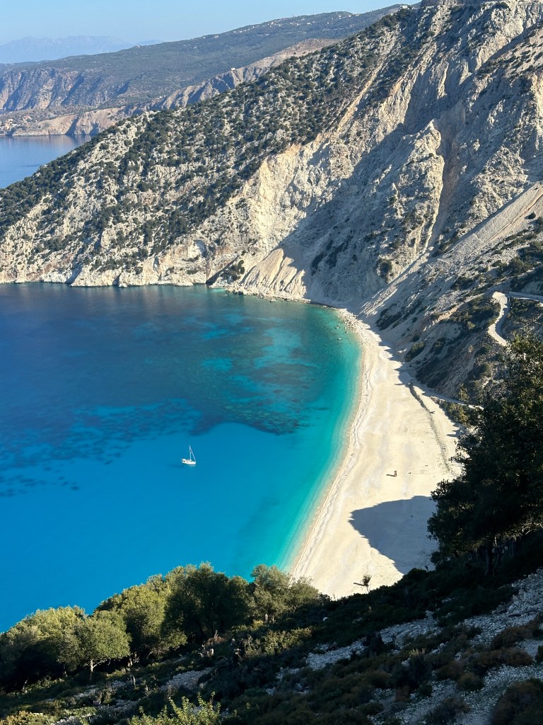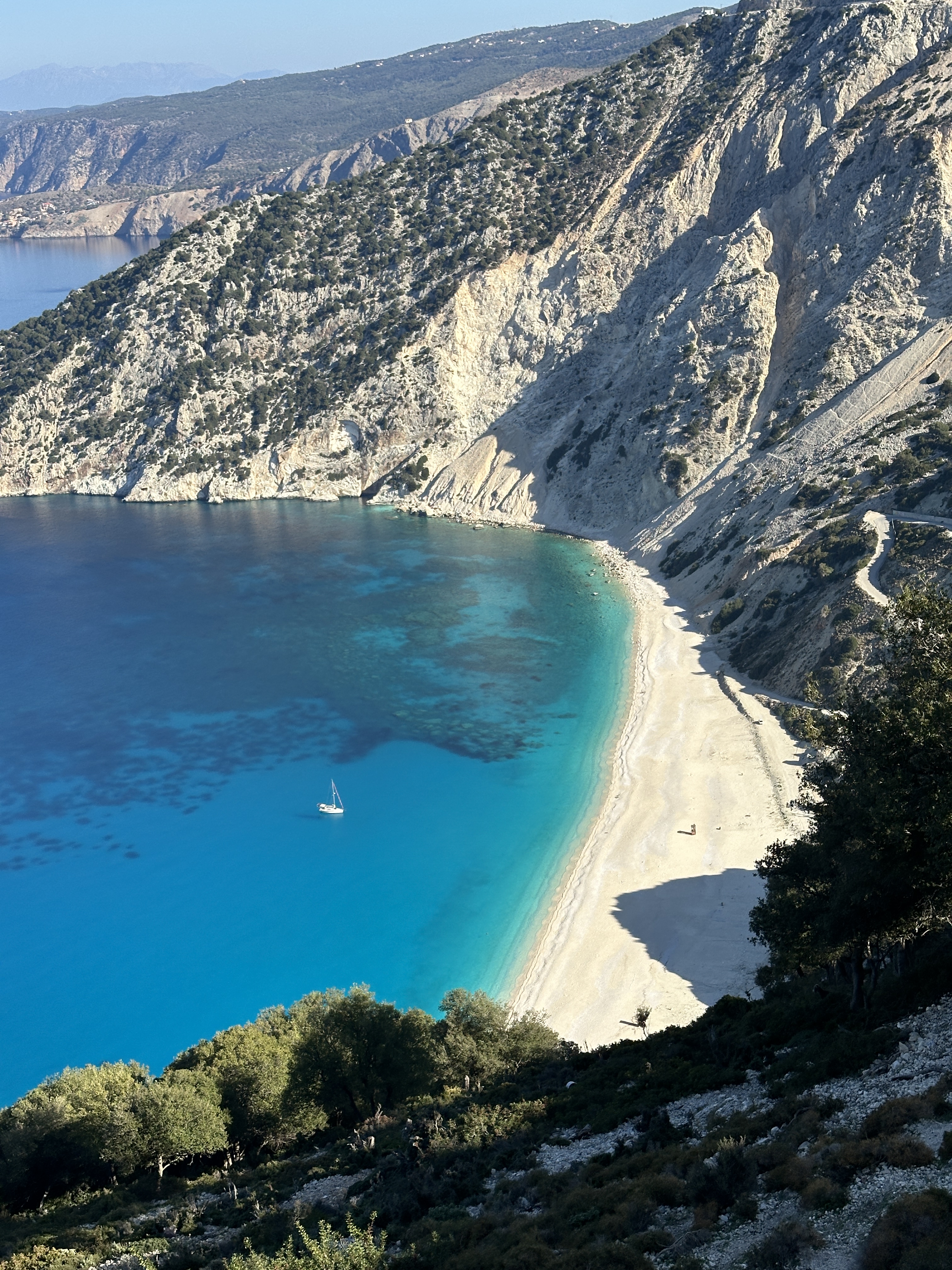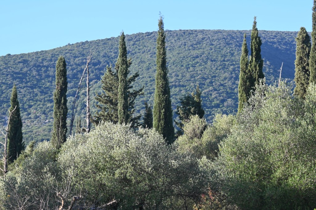 If someone had left Tuscany in the dryer too long, the result would be Kefalonia. Both places share steep, forested hills, soldier-straight cypresses, silvery olive trees, and grapevines.