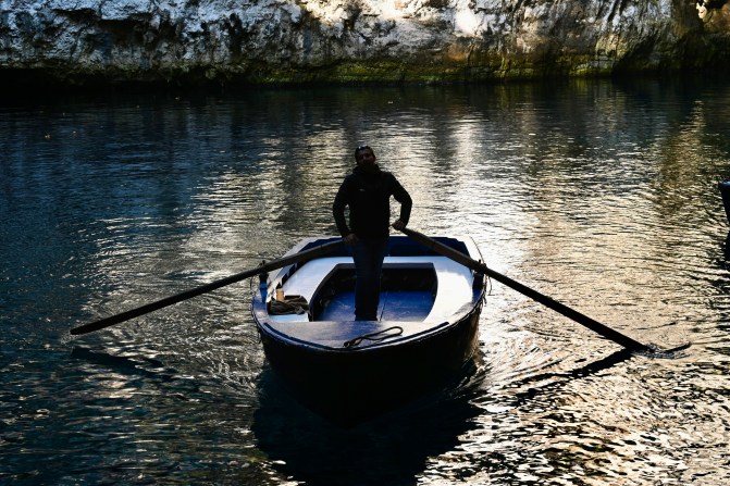Not far from Drogarati Cave, Melissani is an underground lake that was exposed to the air when the ceiling of Melissani cave collapsed in the early 1950s. The water is absolutely clear, even to depths of 15 meters or so. Gondoliers paddle visitors in small boats for a 10-15 minutes ride into the cavern.