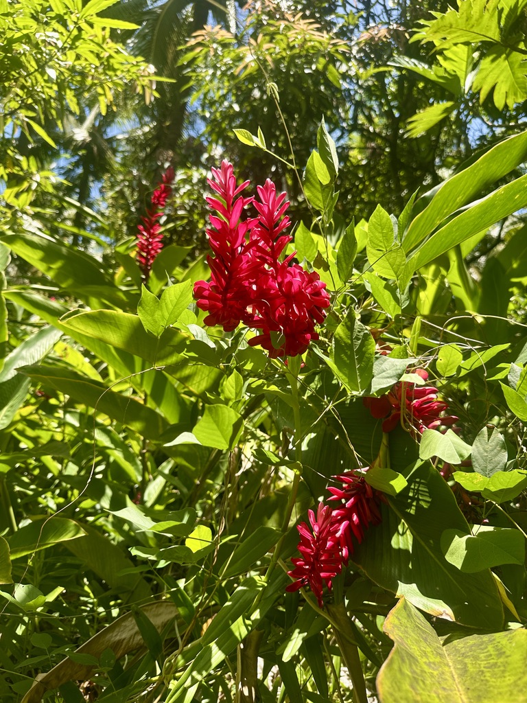 The Garden is around 20 minutes by bus from Neiafu, the town to which we tendered. Along the way, we passed small stores, many decorated for Christmas, one-story houses (some of which had an enormous pig in the front yard), and several tiny cemeteries with enormous, flower-strewn grave markers. (Unlike Samoans, Tongans don’t bury their dead relatives in the front yard.) I tried photographing the scenes outside the bus, but the road was jarring; as the song goes, “Come on shake your body baby, do the Tonga.” (Sorry, Ms. Estefan.)
