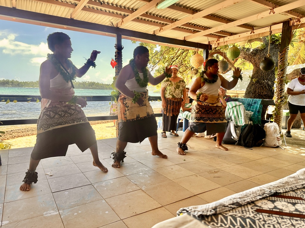 One hundred meters or so down the road from the Garden, ‘Ene’io Beach fronts a peaceful, pristine inlet. Adjacent to the beach is an open-sided building where we met Lisa, a human dynamo, holder of three advanced degrees, humanitarian, and proud proponent of all things Tongan.