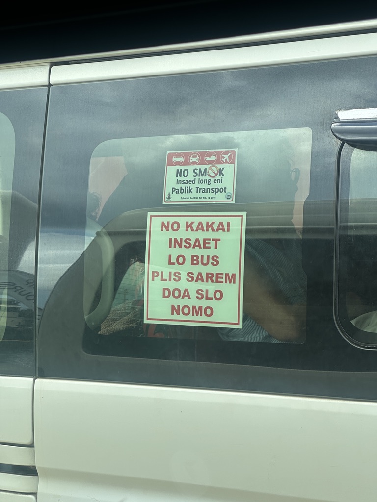 Vanuatu has more languages per capita than any other country, with over one hundred indigenous tongues. English and French are taught in schools, but Bislama, a creole language, is spoken by almost everyone and is often found on signs.
