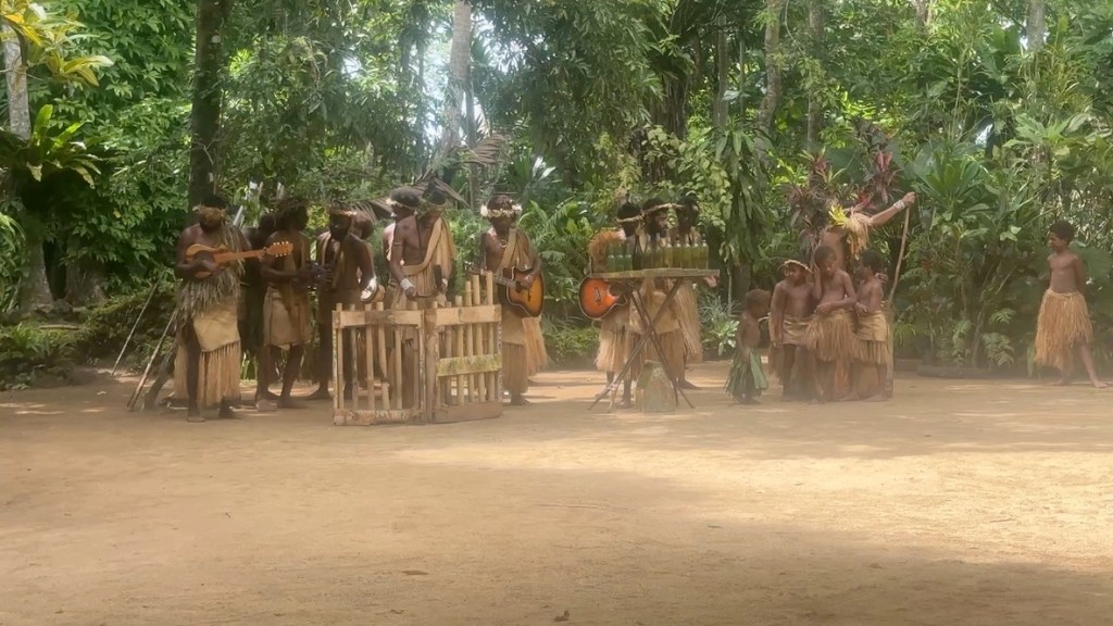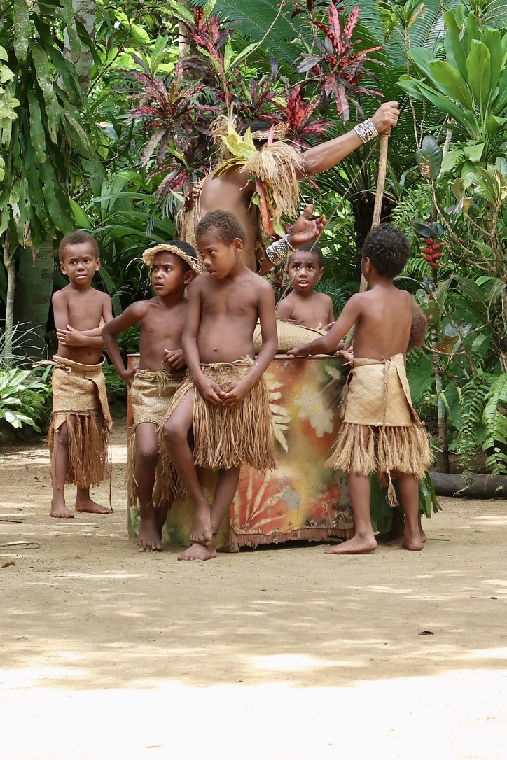Their woven attire and headdresses are not costumes donned for visitors; they are their everyday clothing, variations on which denote status. For example, chicken feather worn in a headband indicate that someone is a pig farmer; the colors of the feather match the colors of their pigs. Such villages pervade the islands of Vanuatu, with 75 percent of Ni-Vanuatu living in rural settings; the difference is the Ekasup has been made into an exemplar for tourists.
