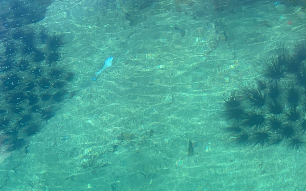 There’s a lovely, well-maintained park running for a few blocks along the water. Sea urchins and small fish are visible from the seawall, and crabs scurry under steps or into the water whenever they encounter a shadow.