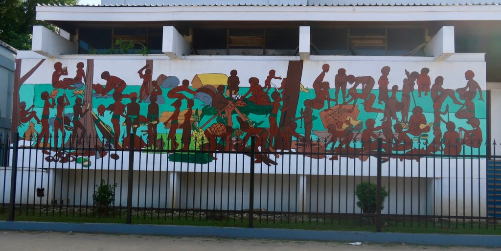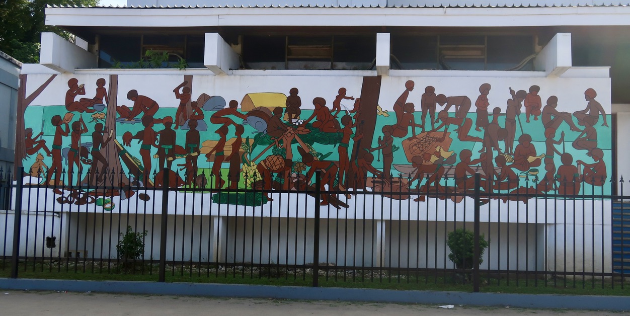 In the city, almost all the women and children, and some of the men, wear vibrantly colored and patterend clothing. To me, this brightness further enhances the city’s beautiful setting on the shore of a pristine lagoon. (Water sports enthusiasts take note: there are myriad opportunities in town to hire a boat, rent scuba or snorkel equipment, or take a glass-bottomed boat tour. One attraction for those so inclined is the world’s only underwater post office, reachable by boat and located three meters below the surface.)