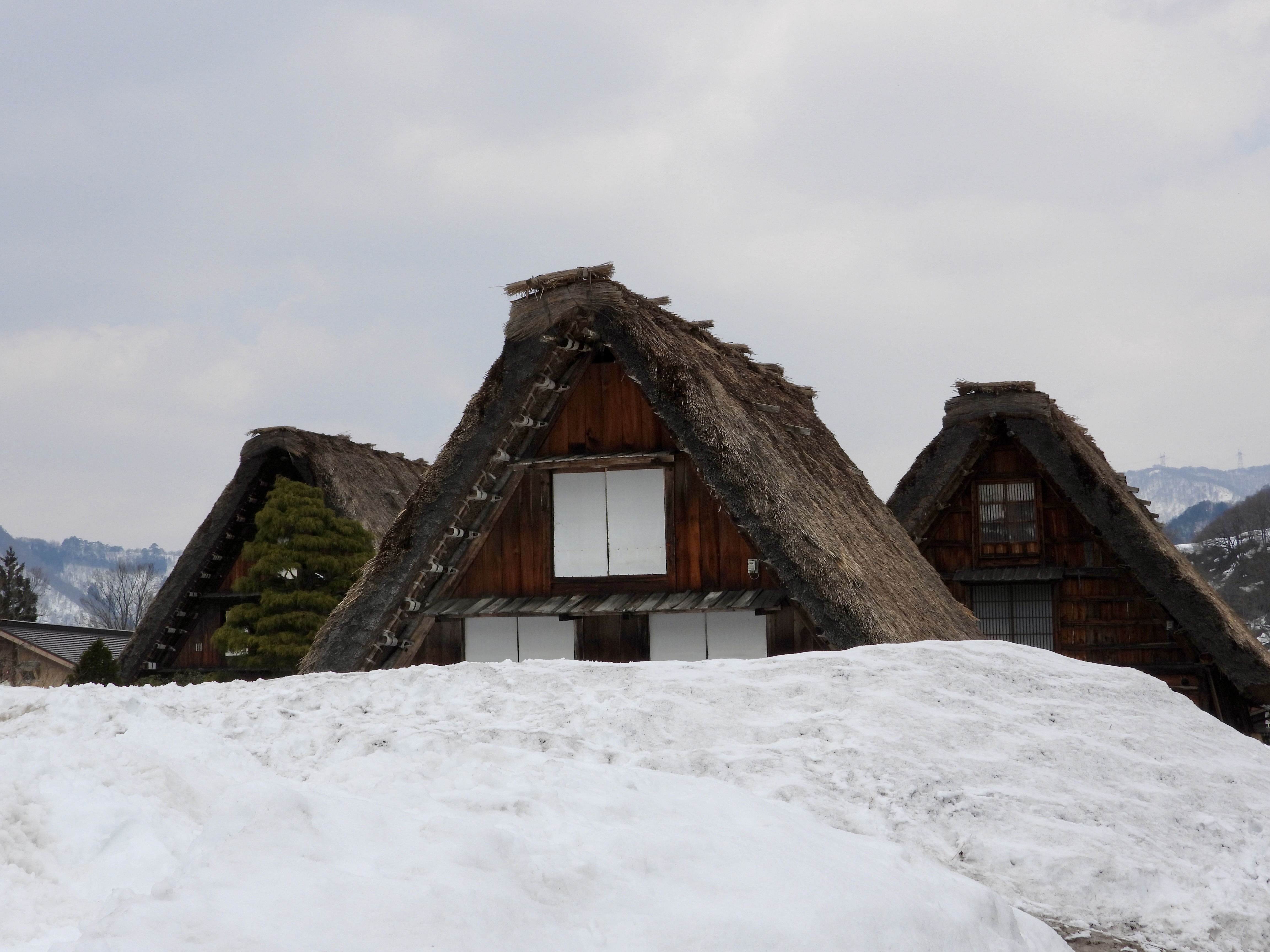 Botanically speaking, today was a day of pampas grass and kozo (paper mulberry). The pampas grass featured in our first two stops, Shirakawa-go and Gokayama. It’s used to make the thatched-roof houses (Gassho) that used to be typical of the area but have all but disappeared. (Gassho means the clasped hands used in Buddhist prayers, and the steep-roofed houses indeed resemble their namesake.)