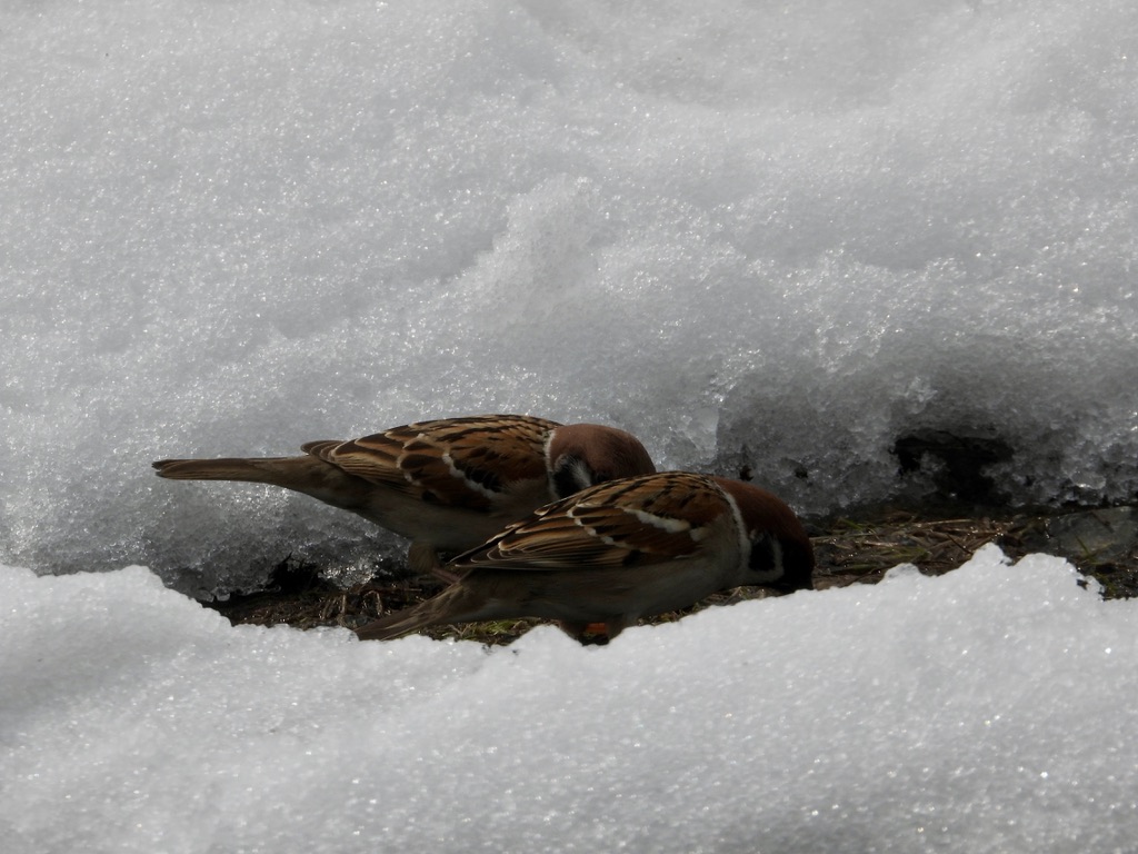 There’s an aural aspect to the town’s attraction as well: water from snowmelt burbles through the street-side culverts, and sparrows chirp happily as the deep winter snow begins to recede. (Pardon the anthropomorphism, but if much of your food supply suddenly reappeared after being buried a few feet deep for several months, you’d be happy, wouldn’t you?)