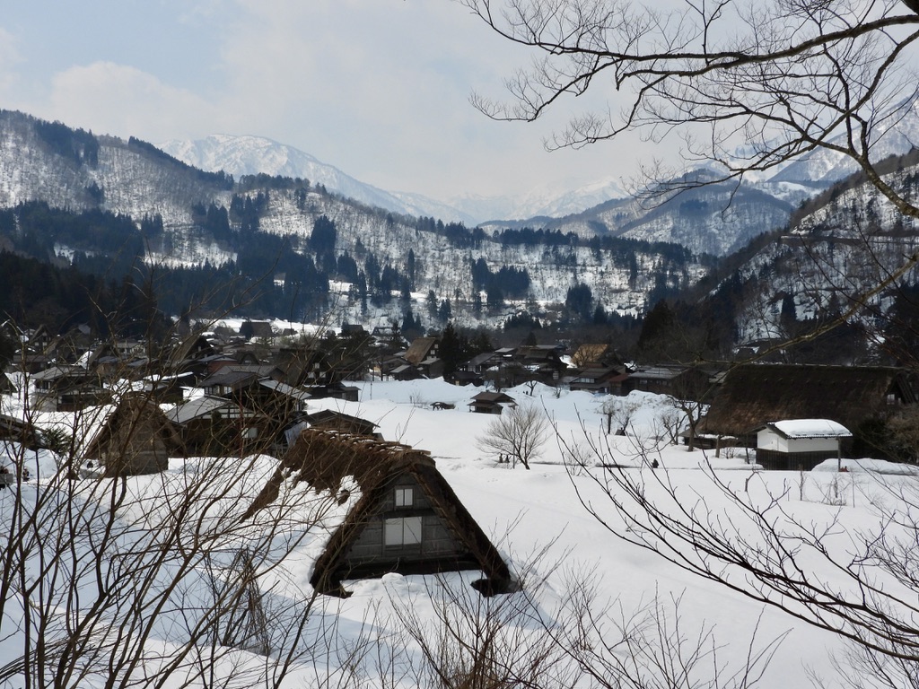 Shirakawa-go is a village of a thousand or so residents and probably the same number of daily tourists. There were fourteen tour buses in the parking lot, but don’t be put off: the town is spectacular and there’s plenty of room to walk, except when crossing the narrow suspension bridge between the parking lot and the town surrounded by a typically aggressive group of tourists from a certain large Asian country.