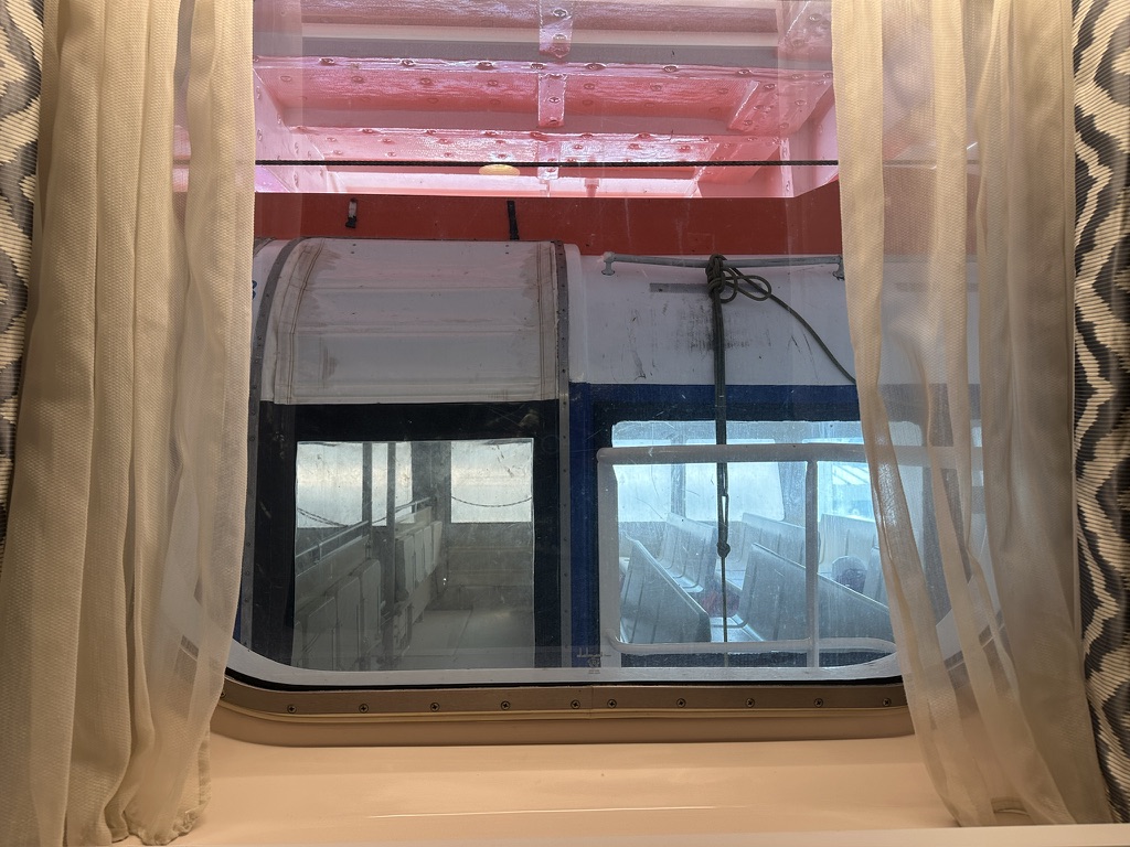 While I’d love to have more of a vista, it’s not a big deal.  I’m rarely in my cabin other than to sleep, and at least, unlike an inside cabin, I can tell whether it’s day or night.