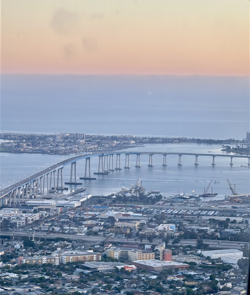 Approaching San Diego airport. The bridge connects San Diego to Coronado Island