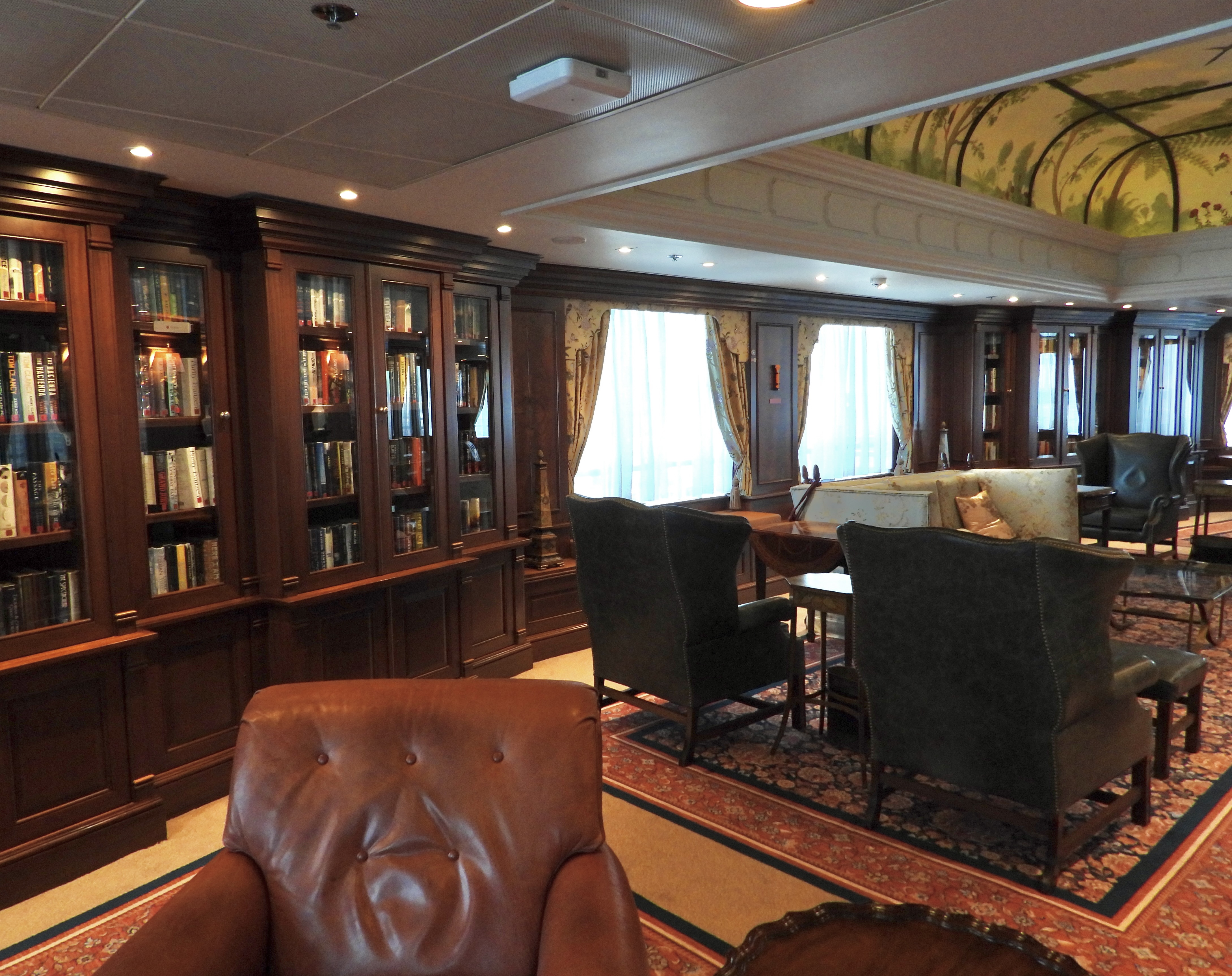 Among oceangoing vessels, the Insignia is on the smaller size, with fewer than 700 passengers.  There’s one big dining room, a buffet restaurant, a couple of specialty restaurants (which I’ll try later in the cruise), a standard-issue pool deck, and several nicely appointed lounges.