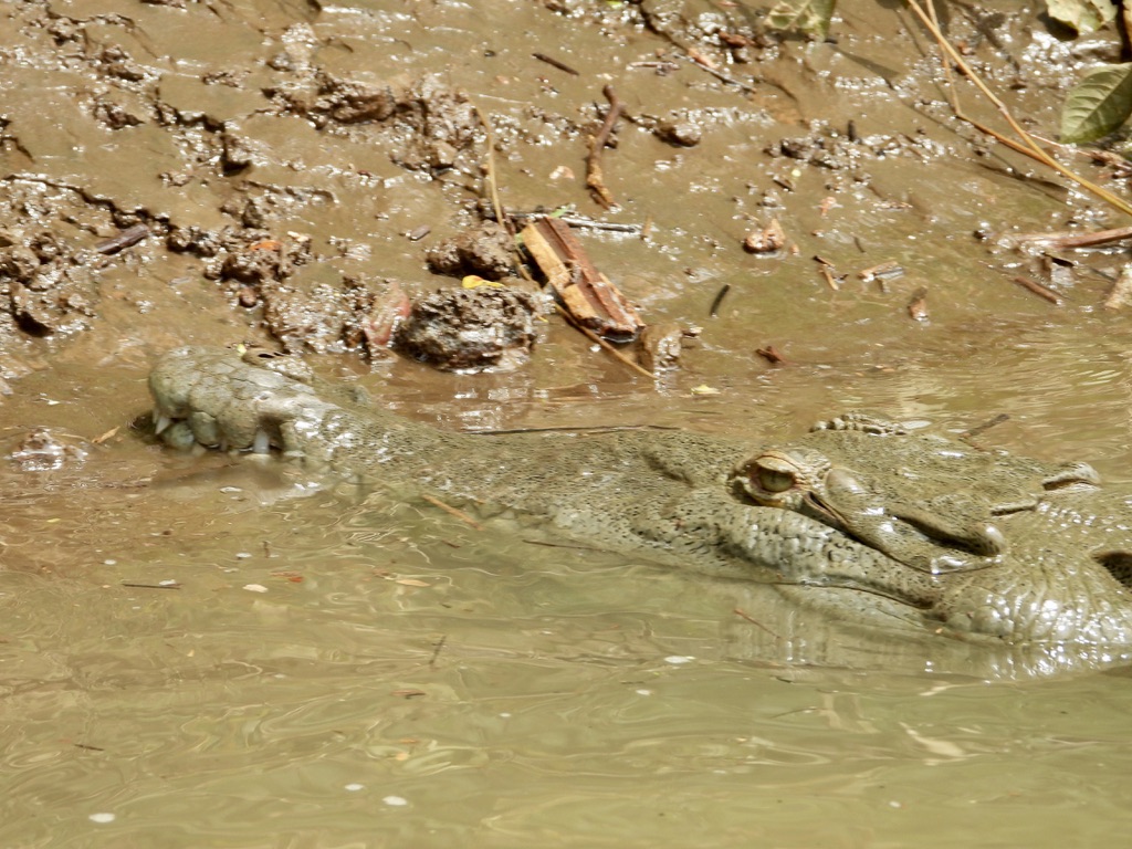 I signed up for a tour entitled “Eco Mangrove Cruise.”  The focal point of the tour was a leisurely boat ride on the Tarcoles River, starting from a point roughly an hour by bus from the ship.  As the pictures interspersed in this post show, the Tarcoles is home to some rather fearsome crocodiles as well as turtles, snowy egrets, vultures, hawks, iguanas, and howler monkeys.