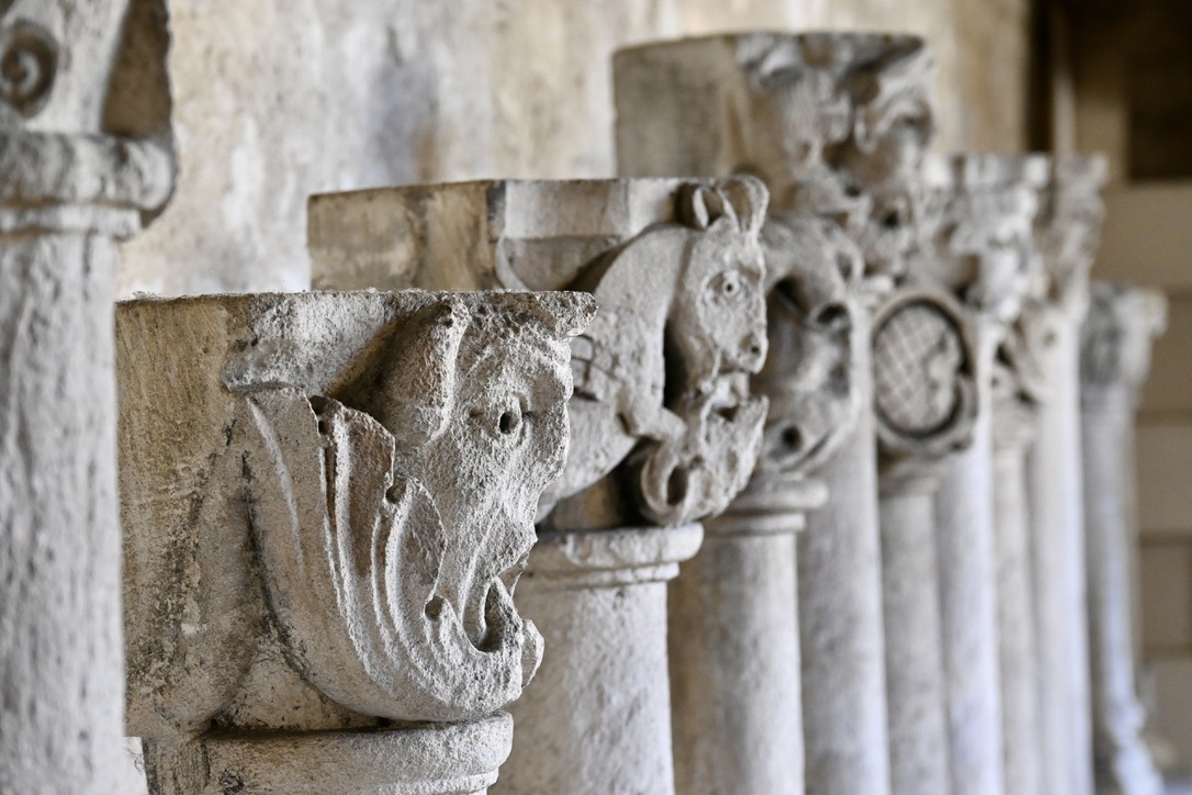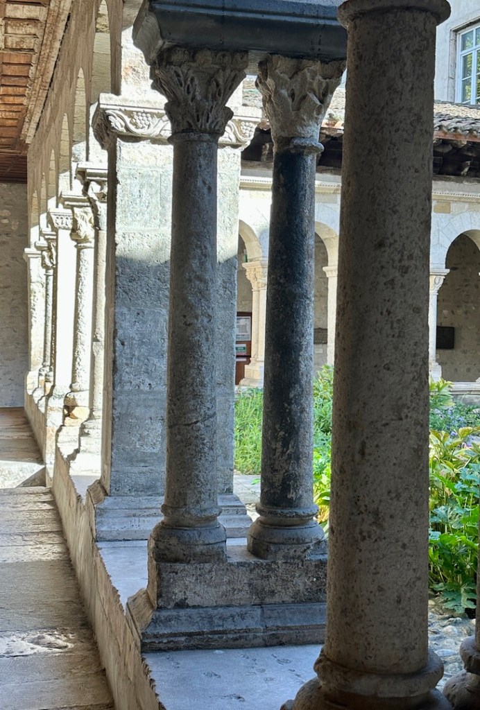 The final stop on this morning’s tour was the Cloître Saint-André le-Bas, which dates to the 12th century and was completely restored in 2010. It’s a peaceful interior courtyard with rows of columns, fragments of ancient tombstones, and capitals topped with fanciful carvings.