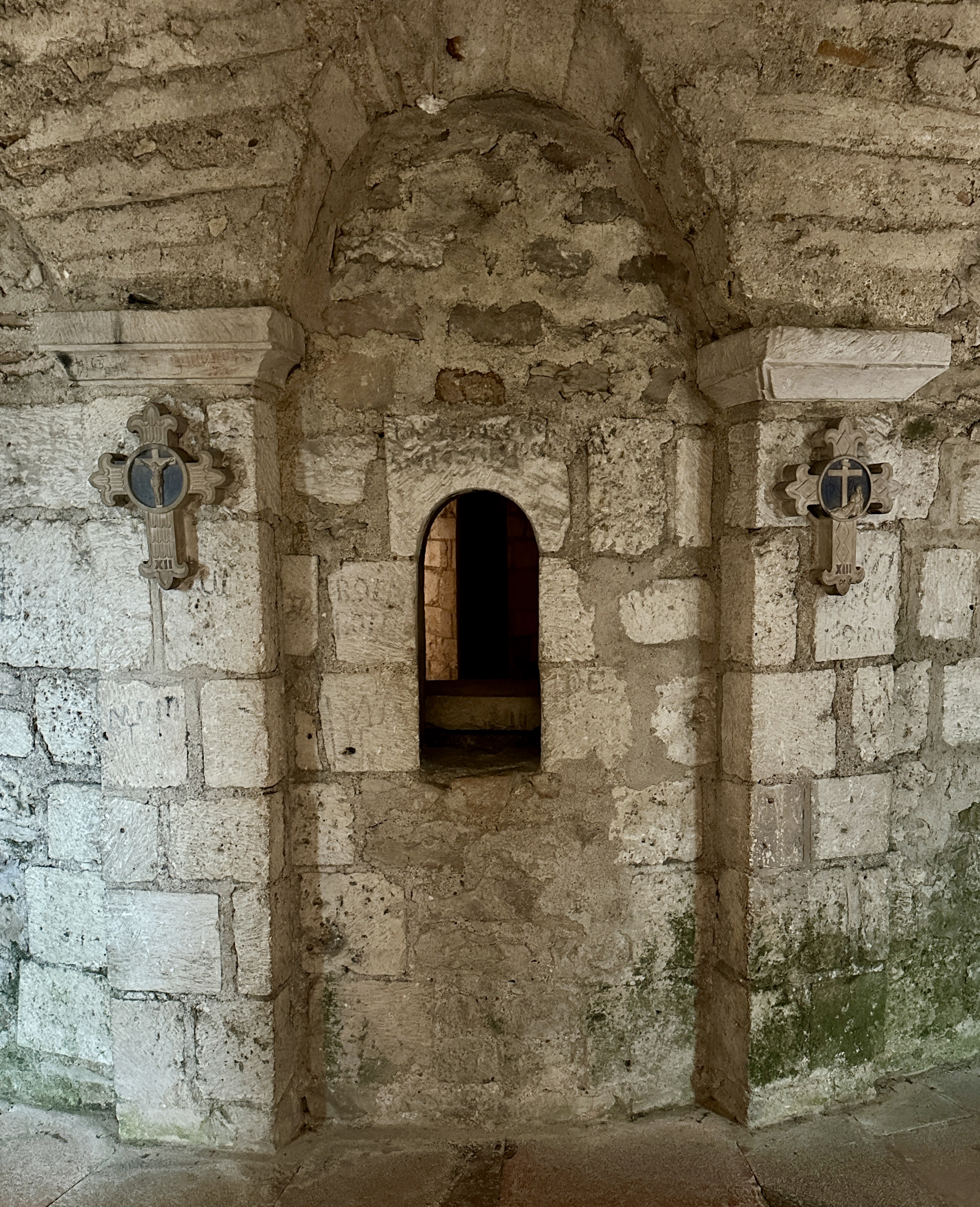 Our tour took us along the town’s charming lanes past several impressive churches, beginning with the 12th century Église de la Madeline (Church of Saint Mary Magdalene), whose door is framed by ornate stone columns.