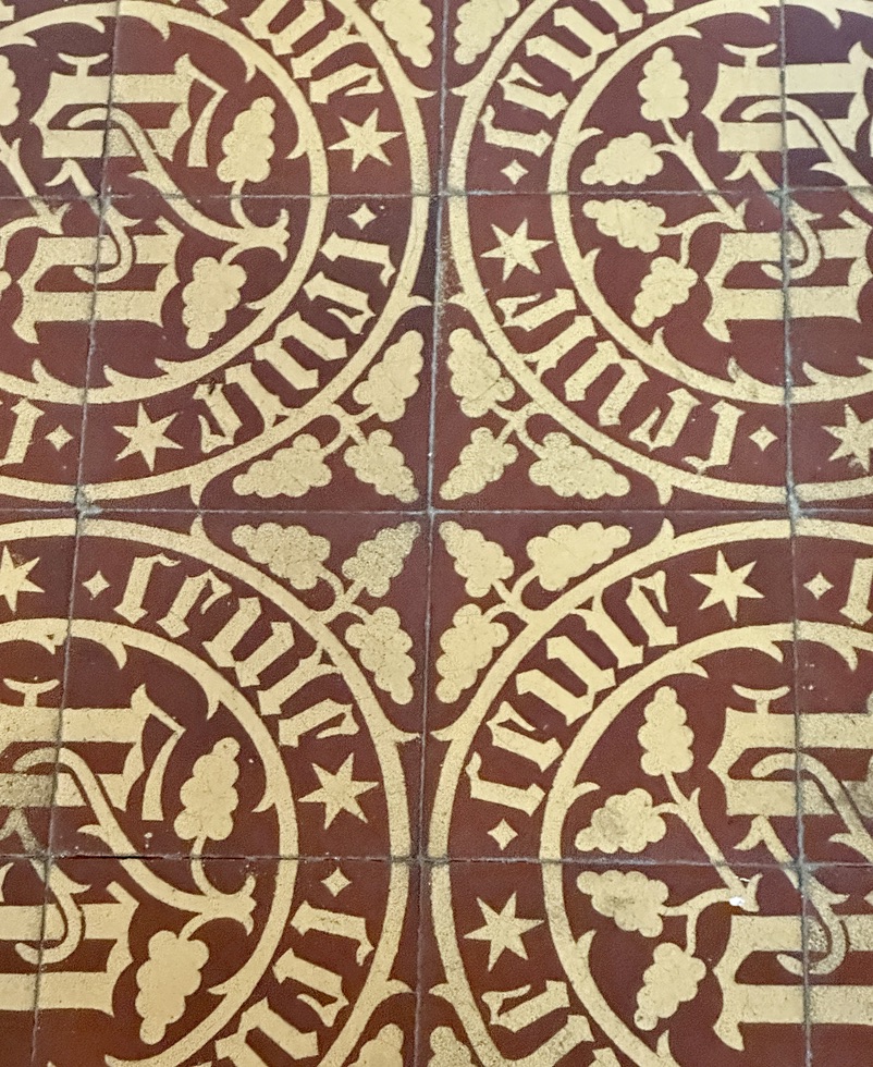 Floor of the Salle des Pôvres, showing the seal of Nicolas and Guigone
