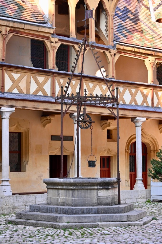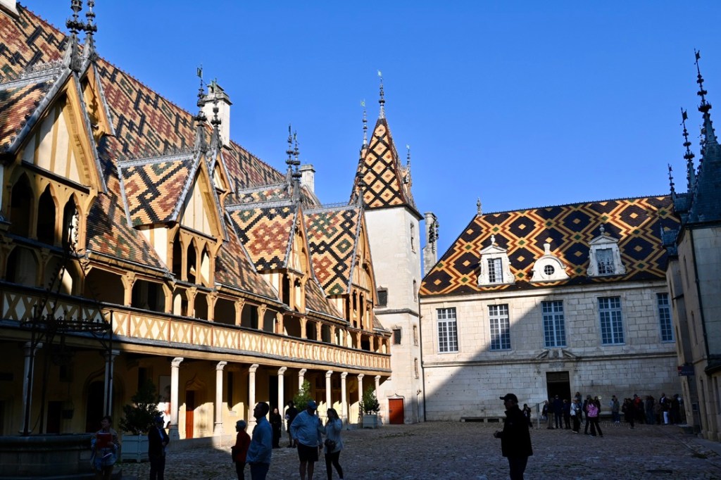 Beaune is famous for the Hotel Dieu, a hospital for the poor founded by Nicolas Rolin, Chancellor to Phillip the Good (Duke of Burgundy) and Rolin’s wife, Guigone de Salins.  (As an aside, Phillip the Good’s grandfather was Phillip the Bold and his father was John the Fearless; his son, less gloriously, was called Charles the Reckless after he went to war against the French King and got killed in battle, ending Burgundy’s status as a separate duchy and merging it into the Hapsburg dynasty, not that the fresh genes ultimately helped.)