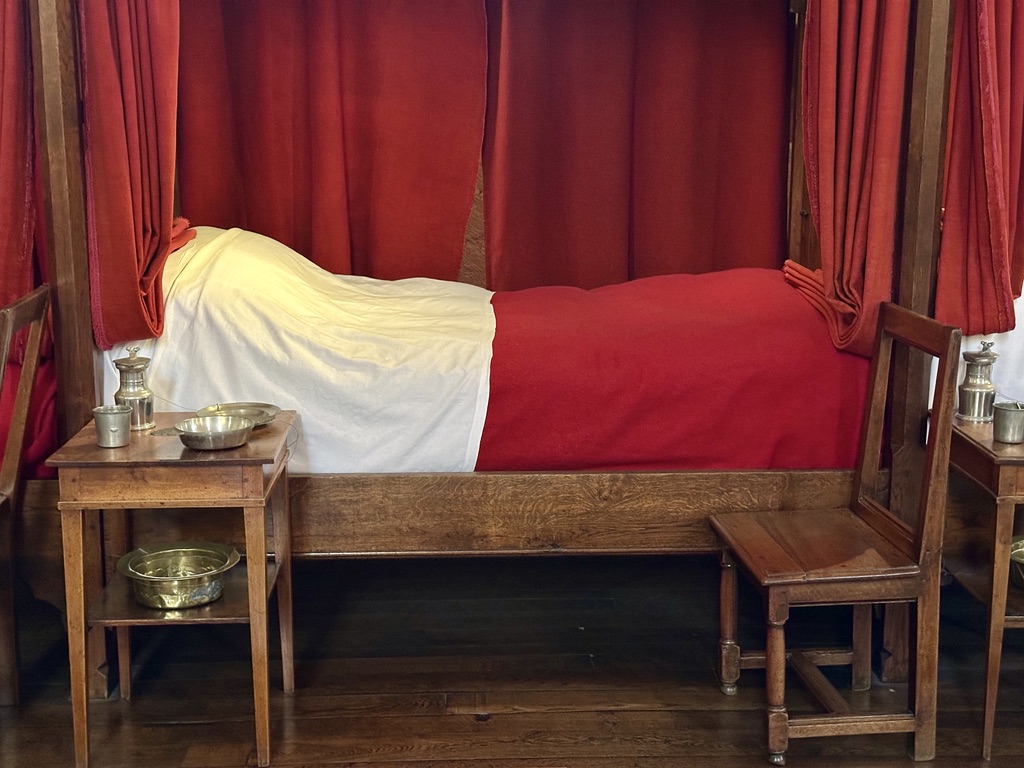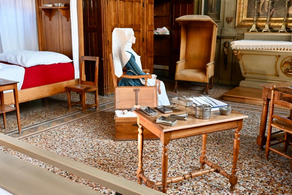The poor were treated with dignity.  Simply having beds was probably new to most of them; while two patients shared each twin-size bed, these were people who likely had slept on straw mats on dirt floors at home.  Each resident had pewter dishes and cups. Most important, they enjoyed the devoted attentions of a new religious order, Les Sœurs Hospitalières de Beaune, whose treatment focused on the patient’s physical and spiritual well-being.