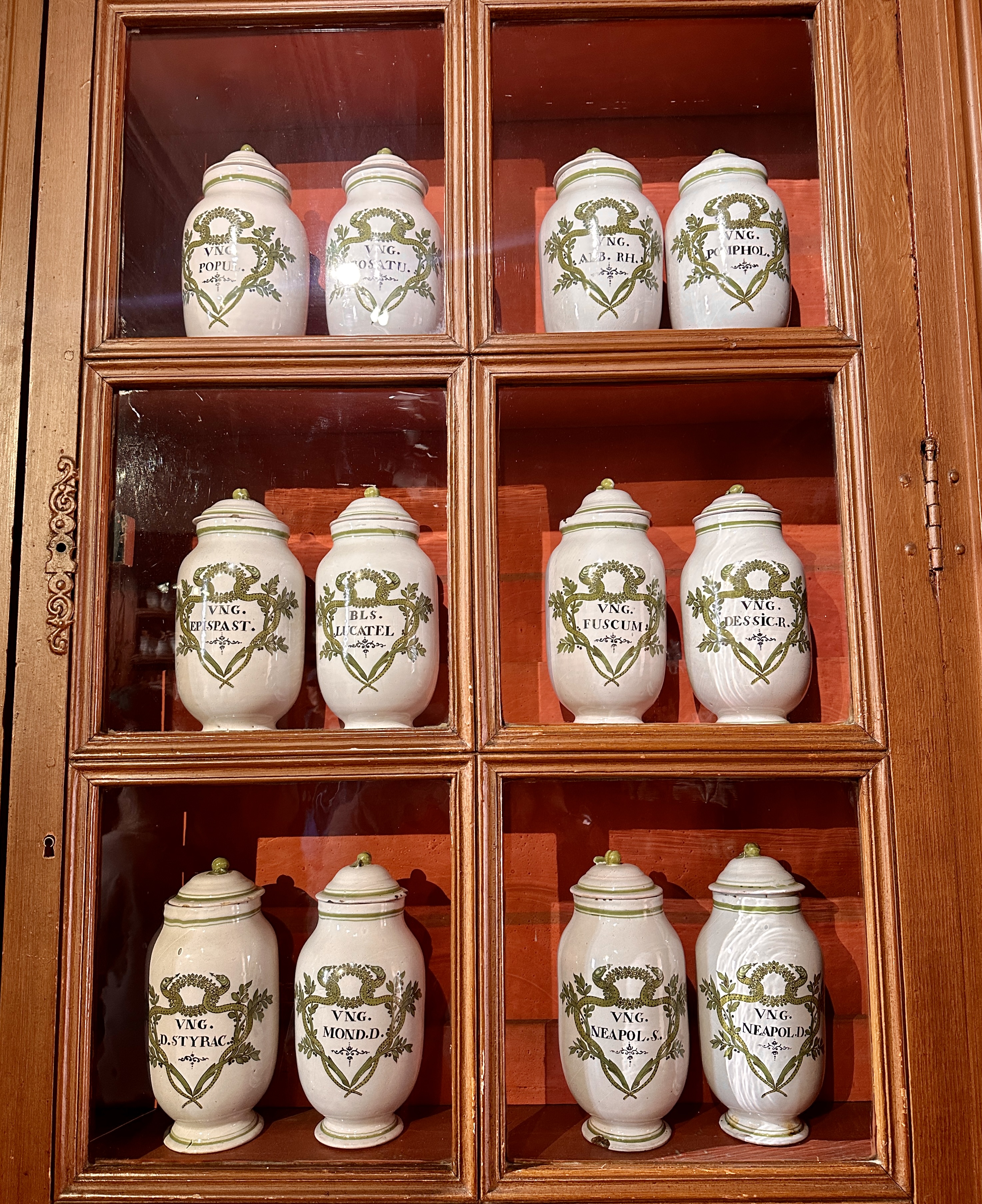 A medicinal herb garden provided raw materials for apothecaries, who stored their medicines – including both the usual herbal mixtures and more exotic ingredients such as dragon’s blood – in a large pharmacy.  If you find yourself near Beaune, the Hotel Dieu is a must-see.