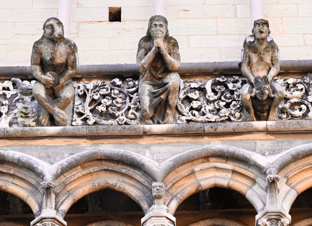 Three out of 51 creepy gargoyles on the western facade of the Church of Notre Dame of Dijon