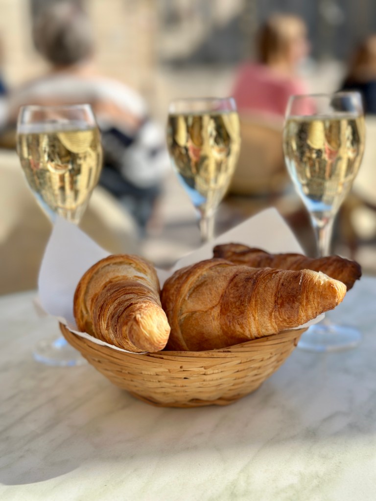 We stopped for croissants and sparkling wine at a cafe on the Place Wilson