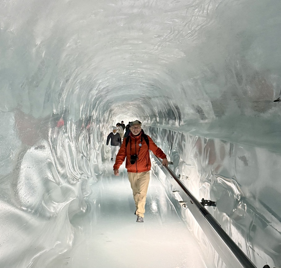Five minutes into the oval, you reach a lift that whisks visitors up to the outdoor Sphinx Terrace (3571 meters (11,716 feet).  On a clear day, the terrace would offer exhilarating views of the surrounding peaks and valleys, all the way from France’s Vosges region to Germany’s Black Forest.