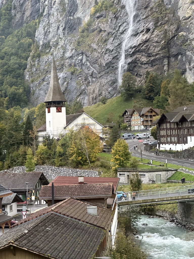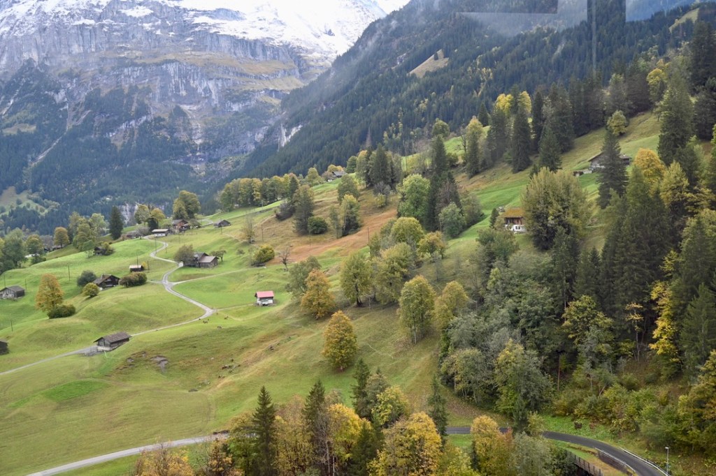 Heading back to Interlaken, we took two trains.  The first involved a 20-minute ride through a tunnel in the mountain.  We then transferred to another train, back on the surface, that glided past jaw-dropping scenery, including the Lauterbrunnen Valley.