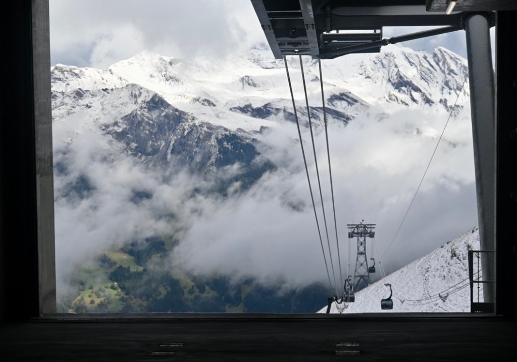 The gondolas are spacious and stable, and they offer panoramic views of Eiger and Jungfrau.