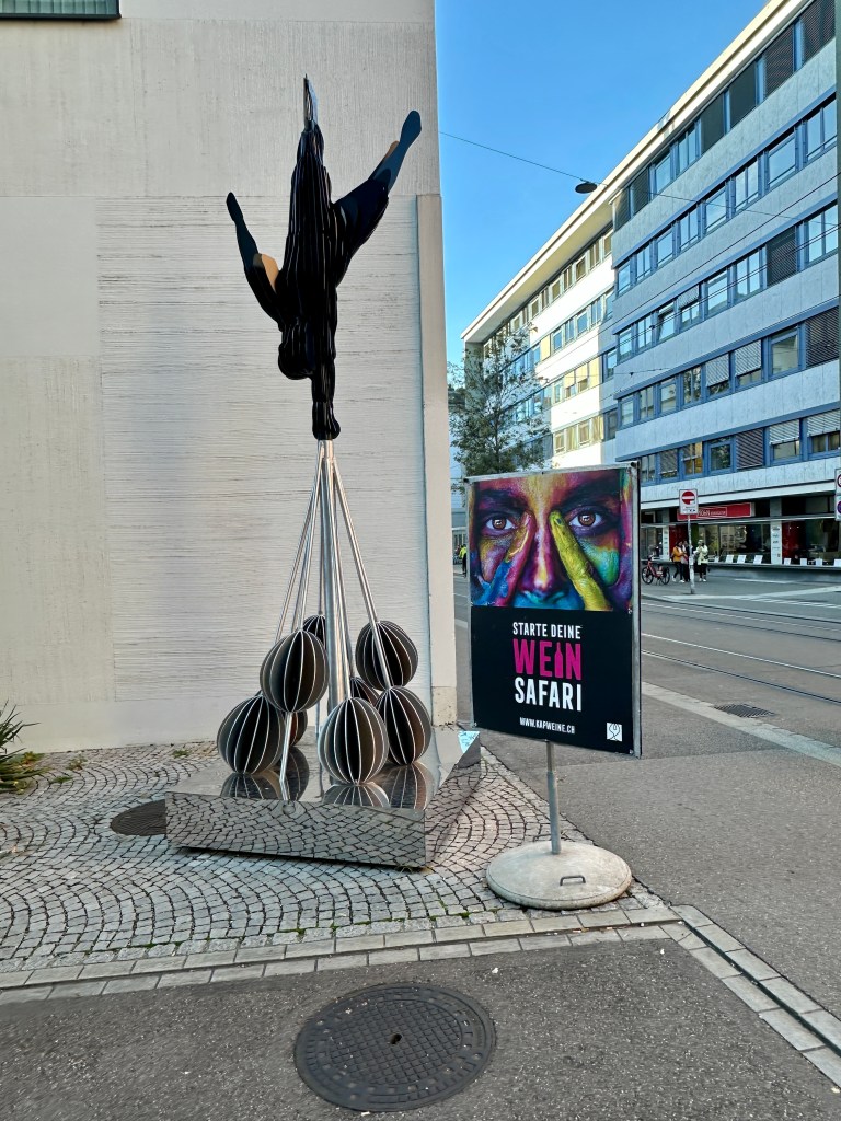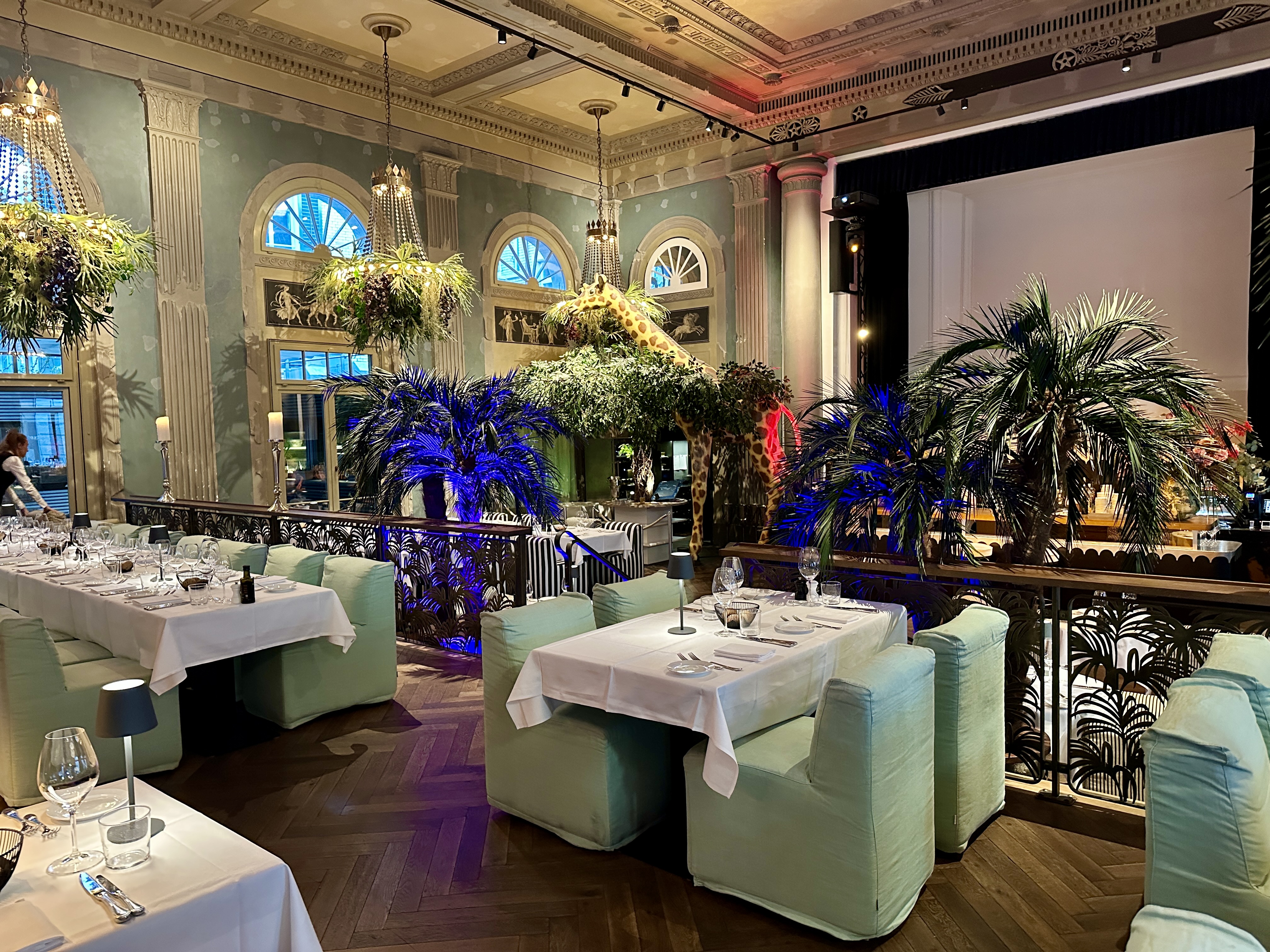 Speaking of restaurants – as I often do – Andy found another gem for us tonight: Razzia Restaurant and Bar, Seefeldstrasse 82, 044 296 70 70 (reservations required).  Set in a converted theater, the restaurant has a beautifully funky dining room, complete with a life-sized statue of a giraffe, a glassed-in wine enclave, and very good food.