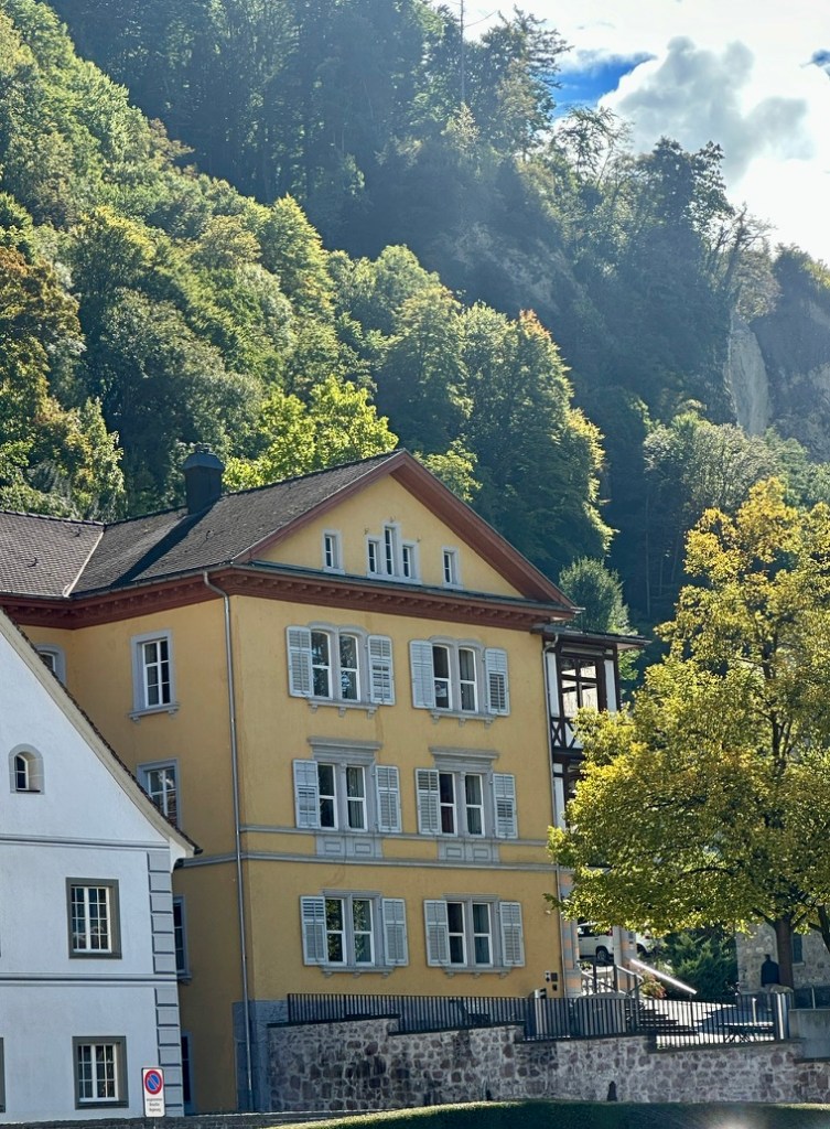 We took a different path back down to the city, where Alexandra showed us the main governmental buildings and other highlights, including a centuries-old yellow building where almost everyone from Liechtenstein gets married.