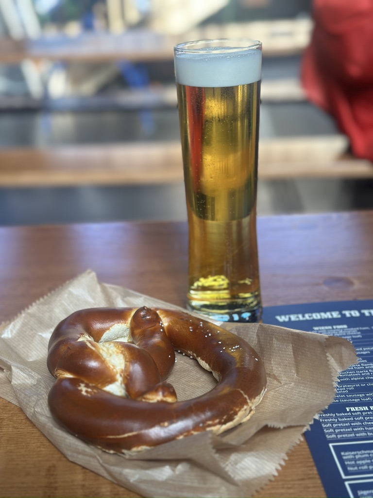 Feeling a bit peckish after our excursion, we stopped at the Brasserie Federal in the Zurich train station for a restorative beer and pretzel (with mustard of course) before heading back to our hotel.