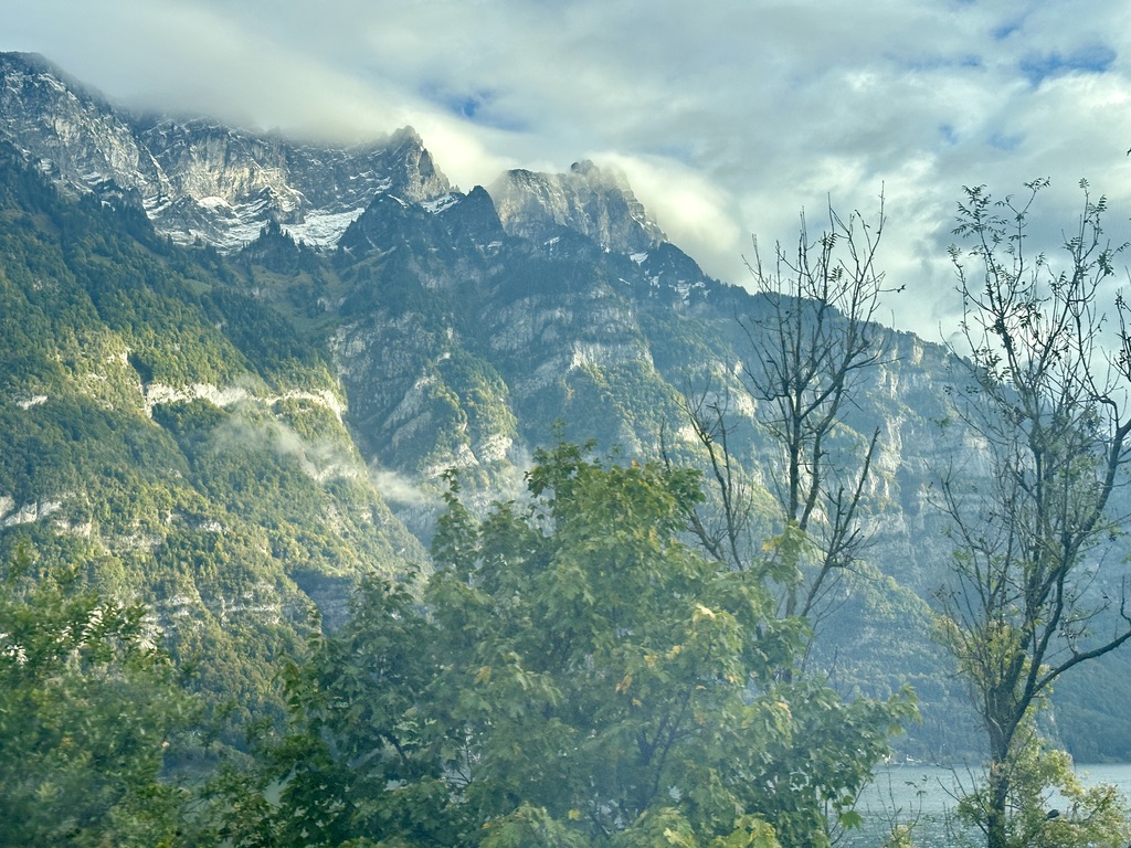 Once the train left Zurich’s suburbs, we were back among the velvety green fields, red chalets, and snow-capped mountains of rural Switzerland, with 40-kilometer long Zurich Lake keeping us company for much of the journey.