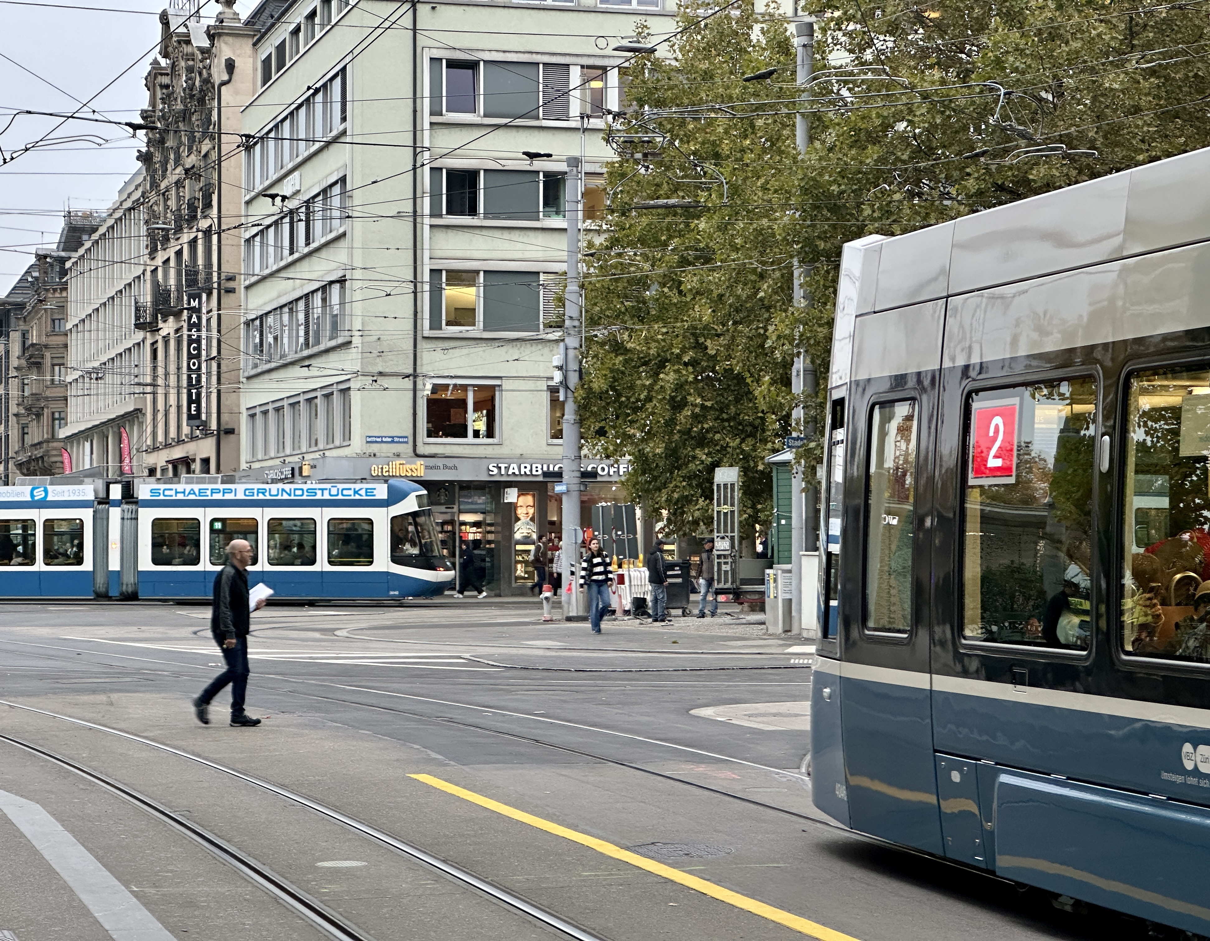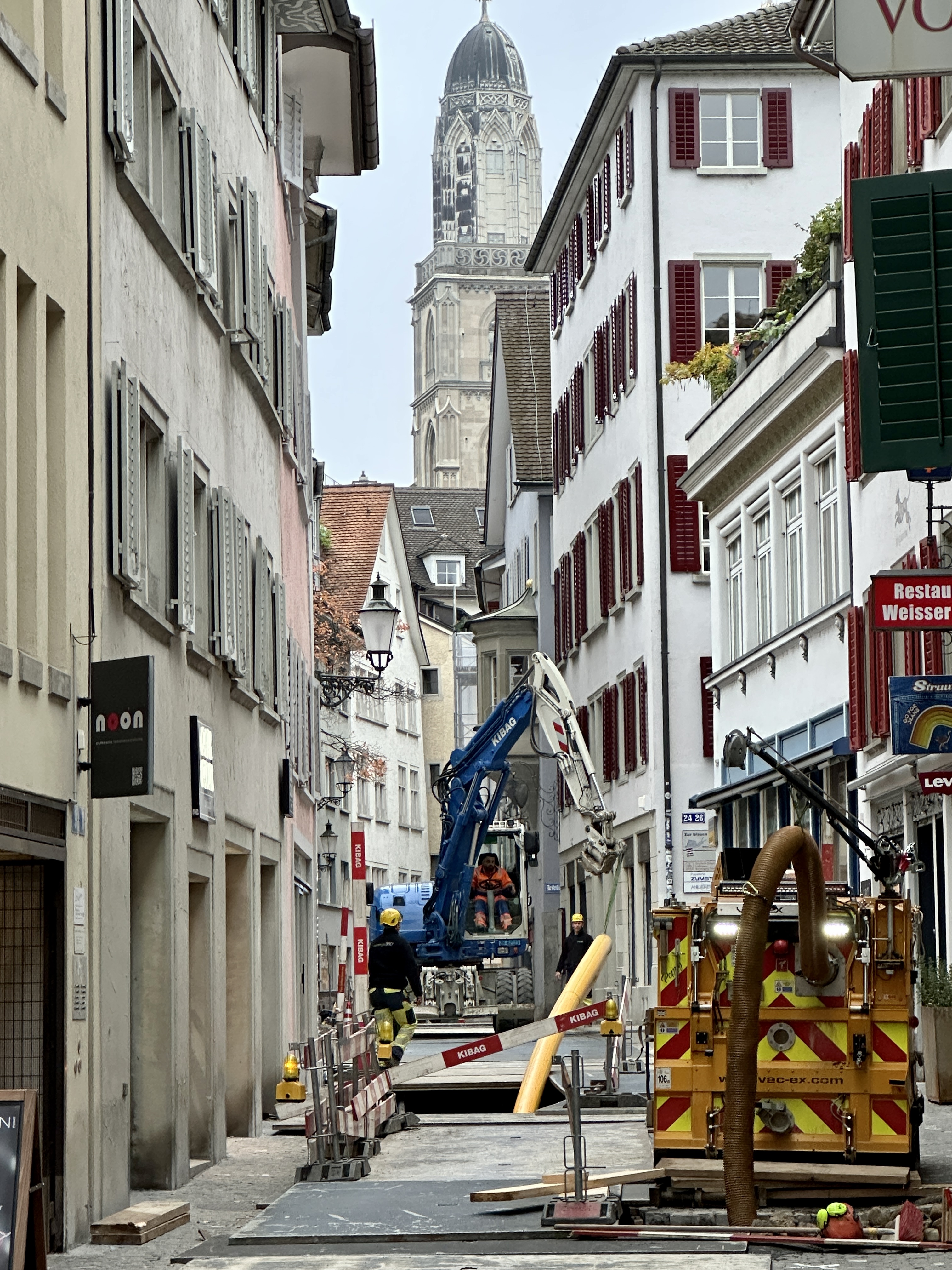 Atypical Zurich street scene, with an intact (for now) street