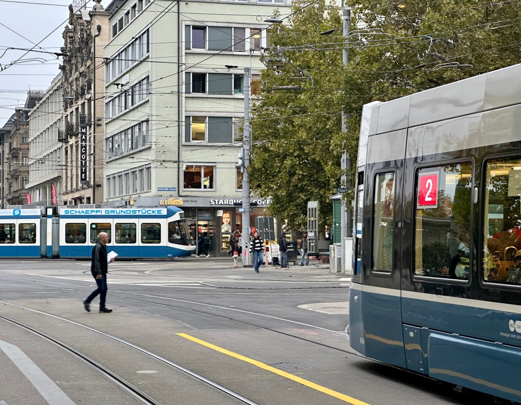 Zurich has an amazing tram system, but you need to be careful crossing the street!