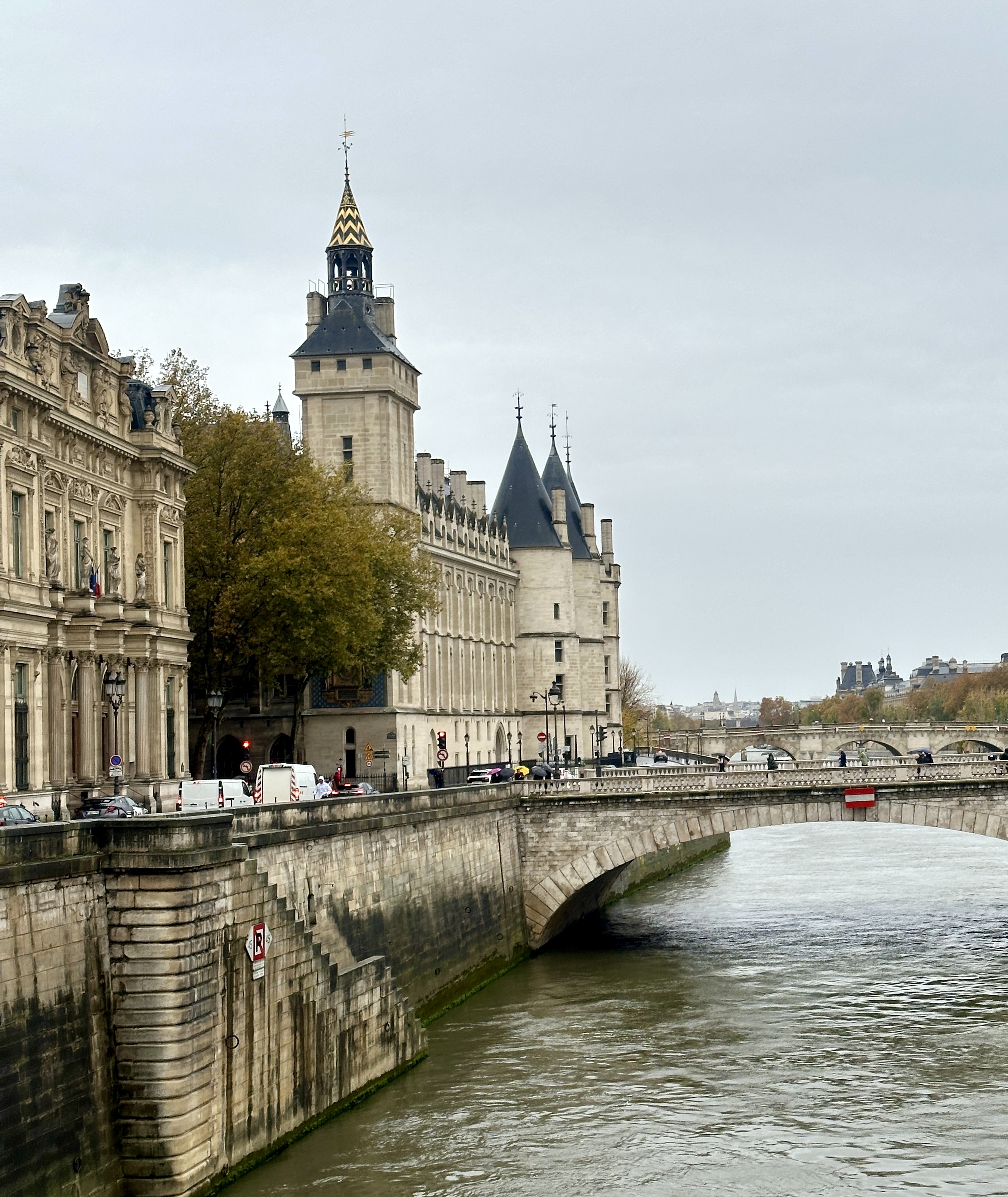 It’s not often one gets to walk along two of the world’s most famous rivers, separated by two thousand miles, in less than twenty-four hours. But thanks to maximal jet travel and minimal sleep, that’s exactly what I did yesterday and today. (Apologies for the paucity and drabness of the photos – it’s like the old joke: “The food at this place is terrible – and the portions are so small!” – but rain and wind in Paris, and exhaustion and fear of crossing the street in Cairo, conspired against me. Things will improve!)
