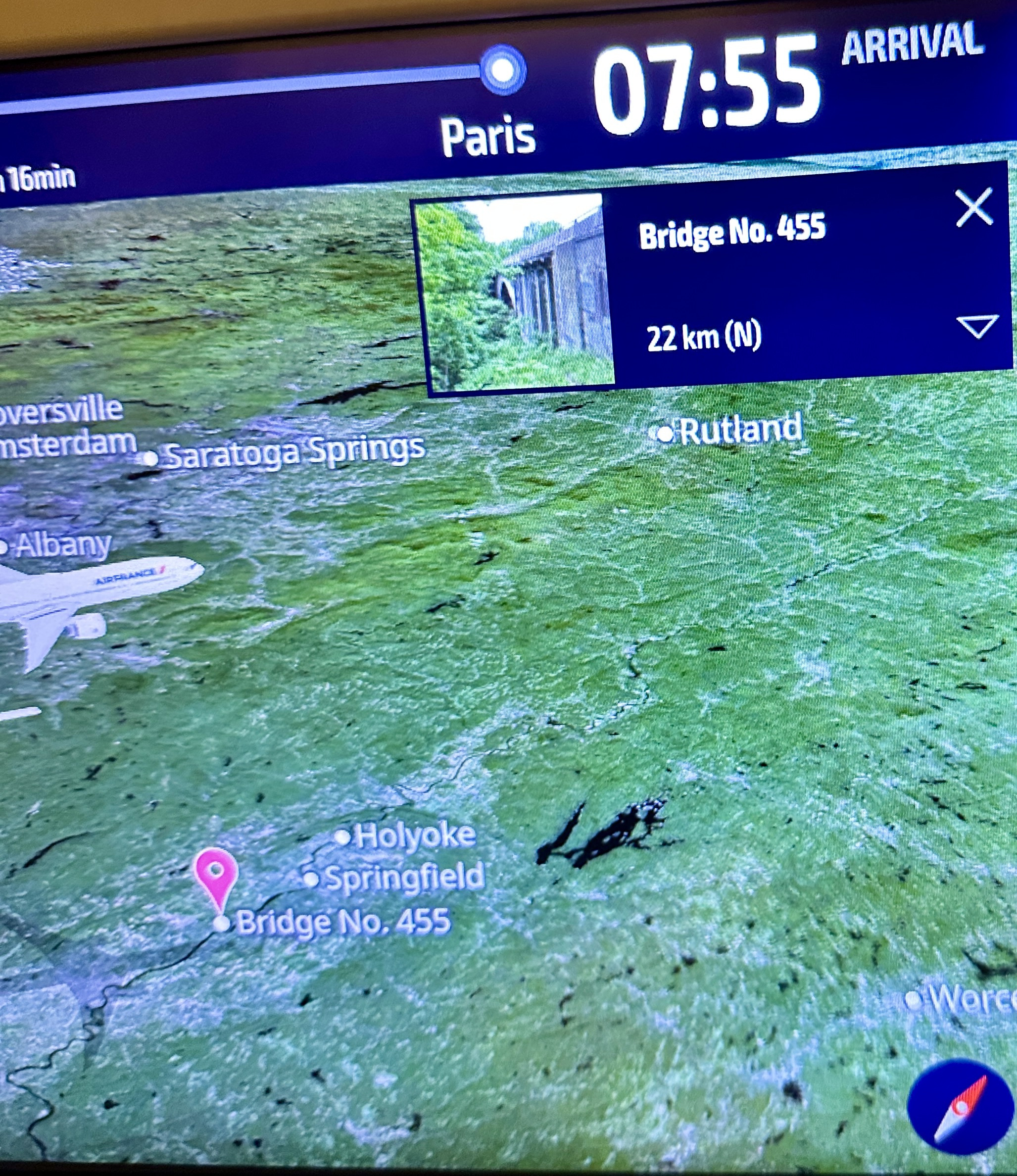 I left Dulles Airport on Halloween night, flying Air France to Paris. Shortly after takeoff I turned on the interactive flight map and was amazed to find that we were currently 20 kilometers from “Shea Stadium,” which was demolished in 2009. Perhaps Proust had taken charge of the highlights selected for the map; “Remembrance of Things Past,” indeed. I couldn’t get my phone out quickly enough to photograph Shea’s resurrection, but I did notice that the map’s “highlights” eschewed things like notable towns and geographic features, instead pointing out random bridges and stores. I’m sure there’s some French deconstructionist who could explain why, but I wouldn’t understand it anyway.