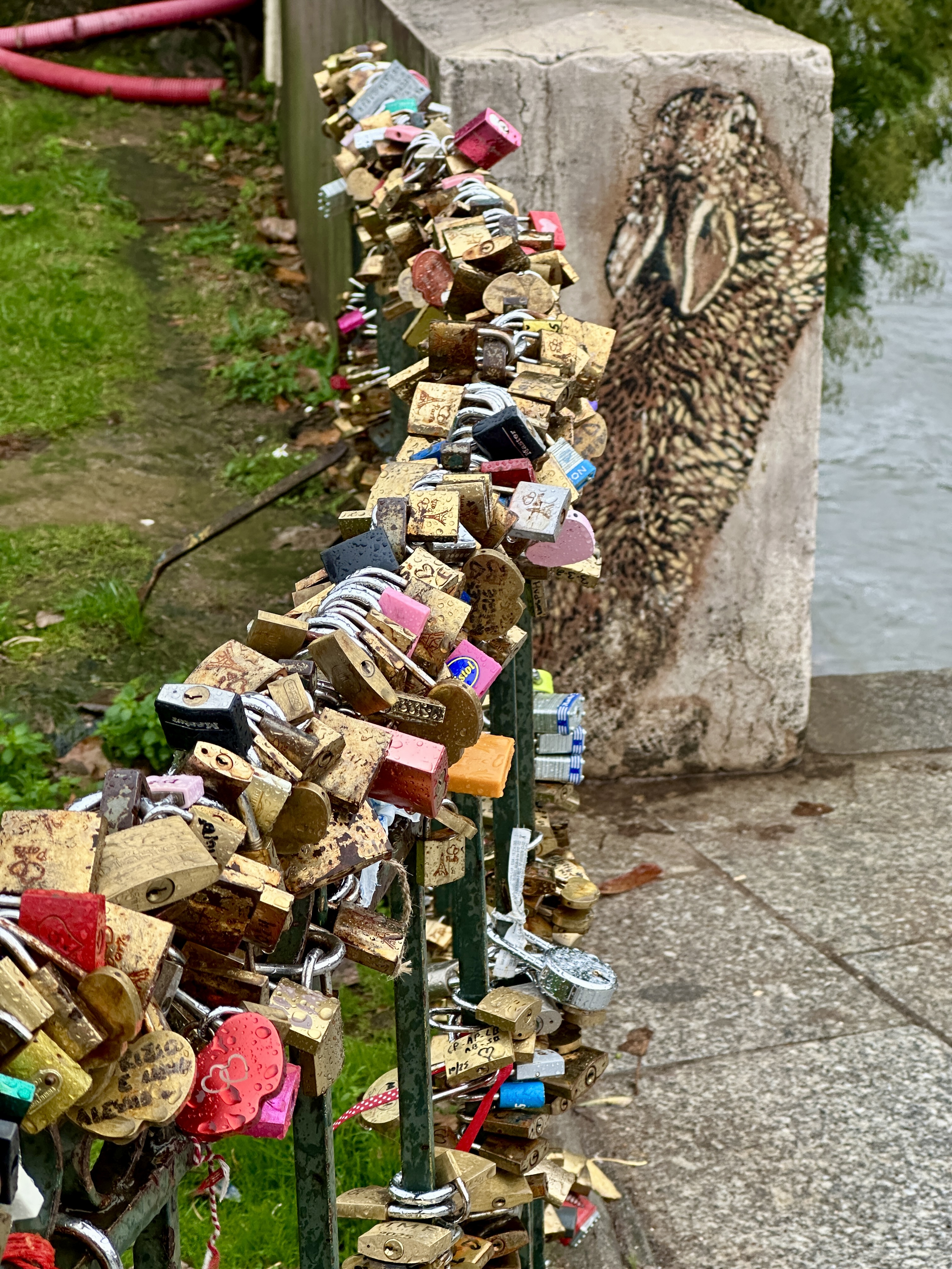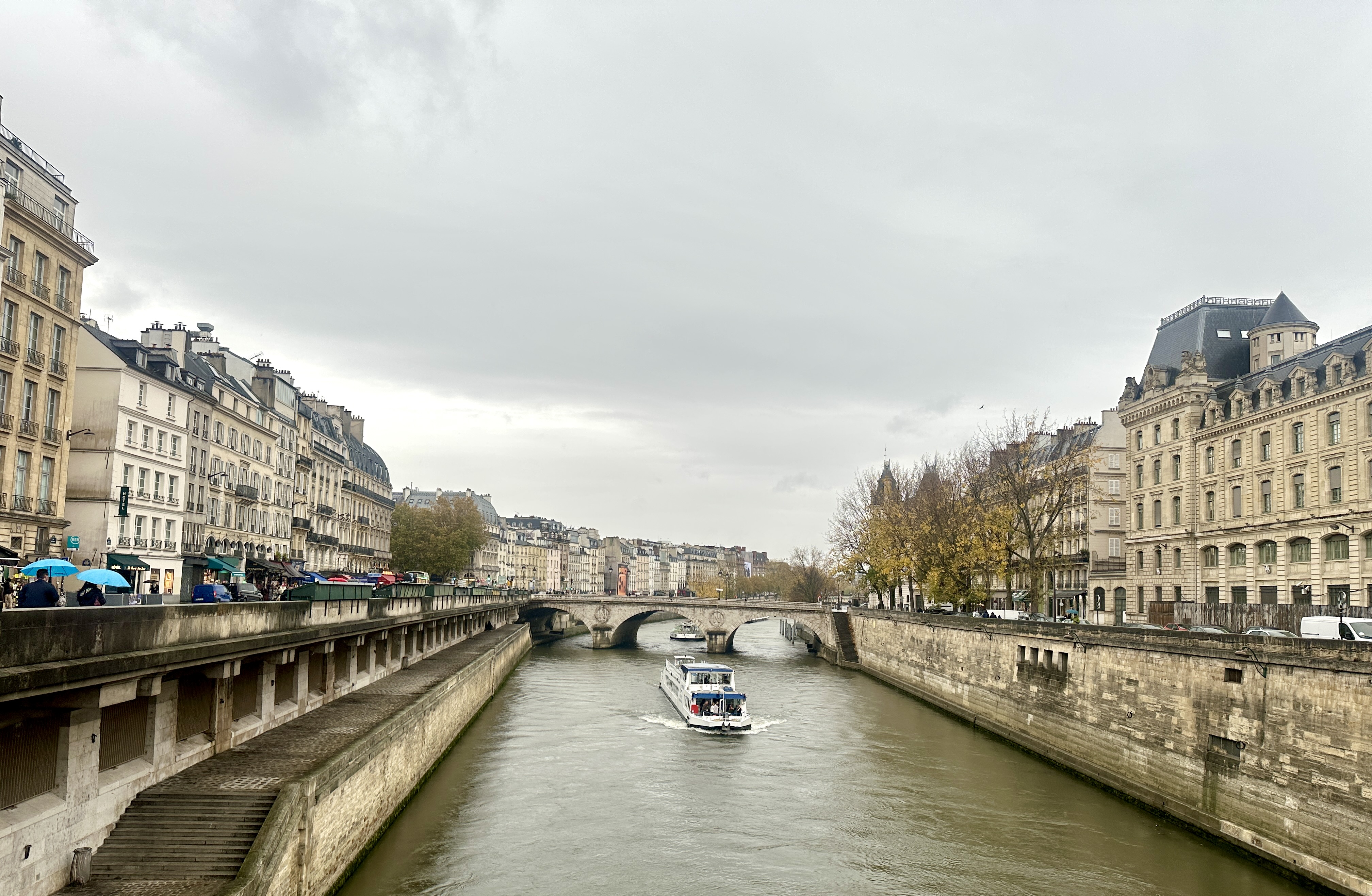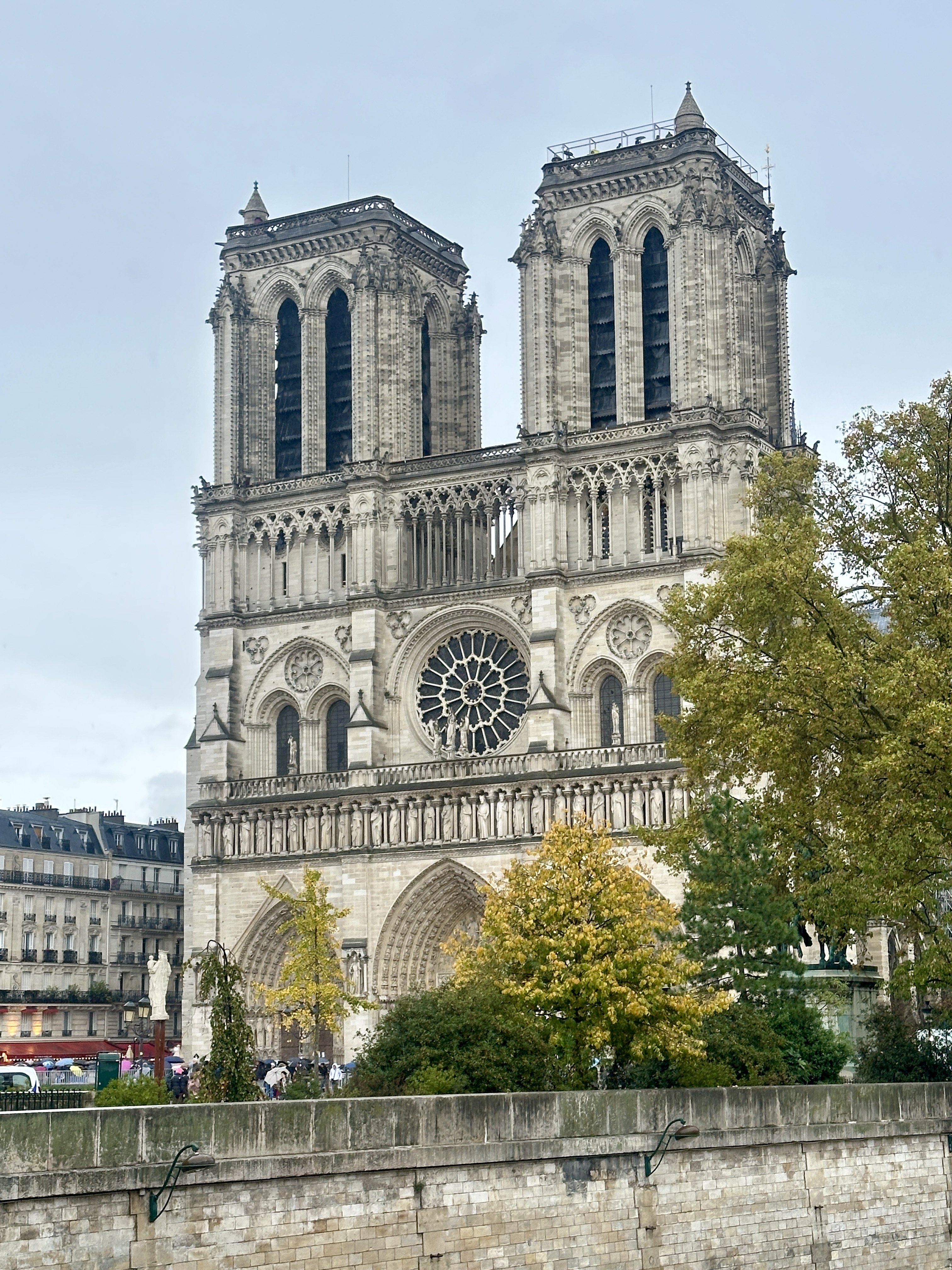 Forty minutes later, I emerged into drizzly but still beautiful Paris, getting off at the St. Michel-Notre Dame stop. There was an enormous line to visit the restored cathedral, so instead I wandered in and out of the narrow lanes near the Seine until the persistent precipitation persuaded me to head back to the airport.