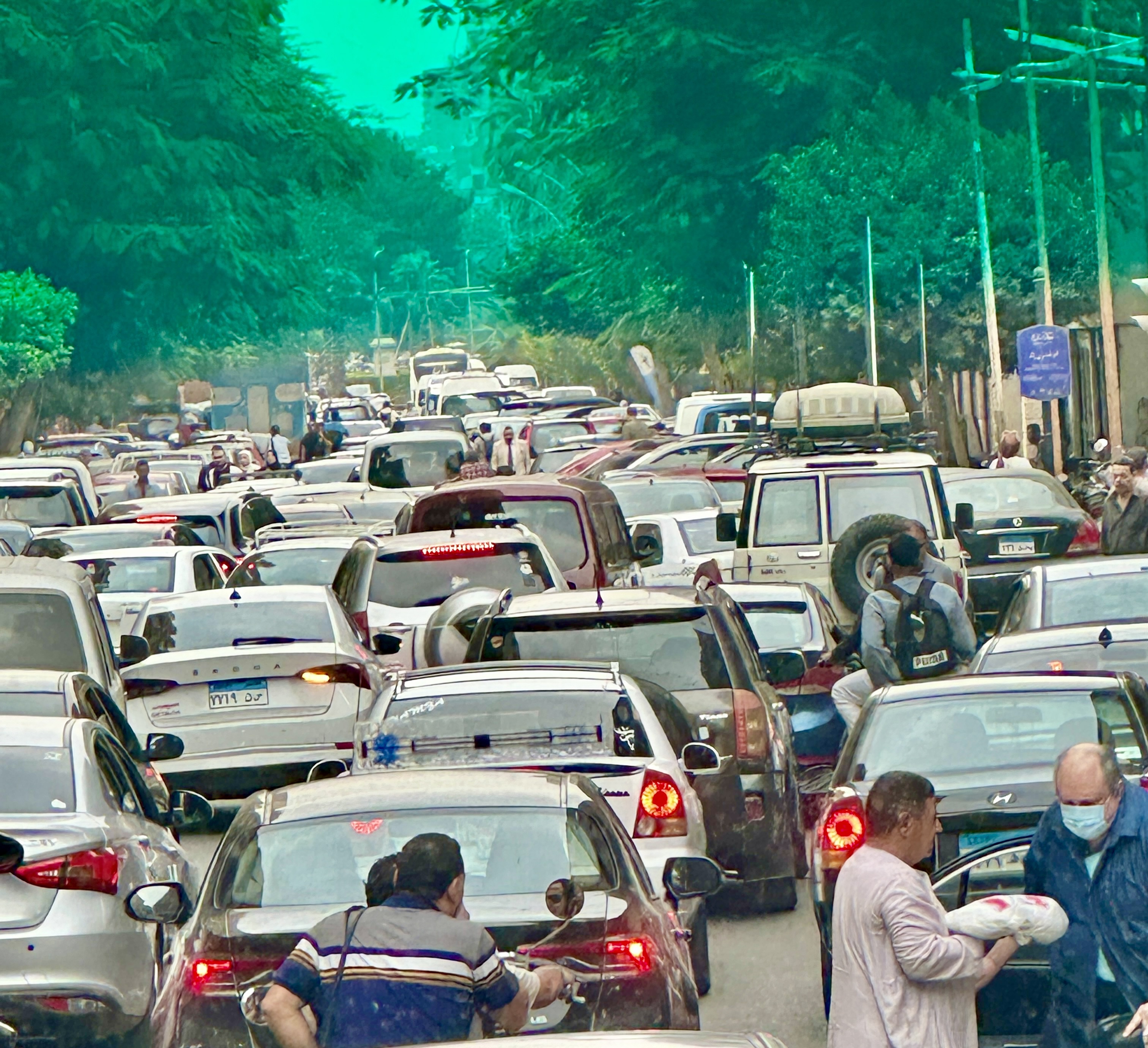After lunch at a restaurant that would have offered sweeping views of Cairo on a less hazy day, we made our way in fits and starts to the Egyptian Museum. Traffic in Cairo was abysmal, but our bus’s glacial pace gave me a chance to take some more or less clear photos through the bus window.