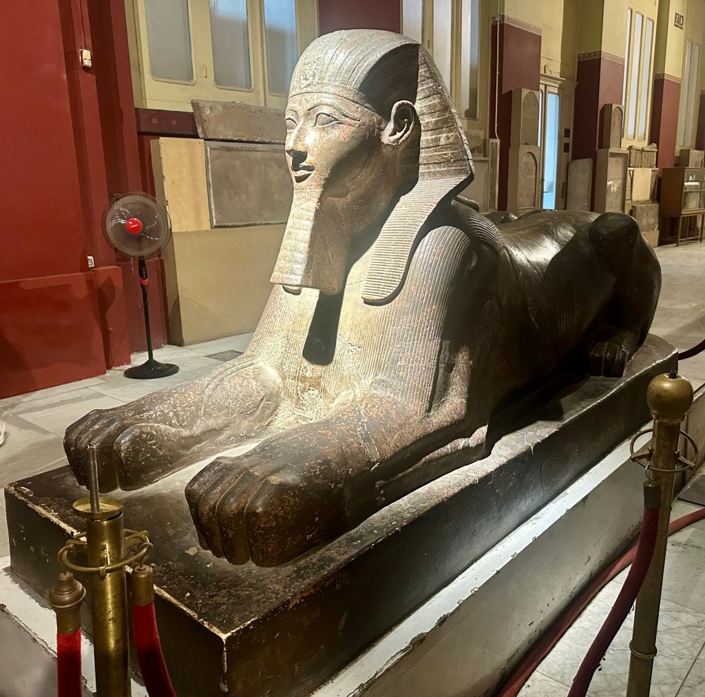 Our guide/tour director, Amr – I can already tell he’ll be excellent, even though the tour only began this morning – introduced himself with the following quote from Ibn Battuta: “traveling leaves you speechless, then turns you into a storyteller.” Take my word for it: hard as it may be to believe, I was indeed speechless during our visit to the Egyptian Museum this afternoon. Now, though, it’s time to tell stories.
