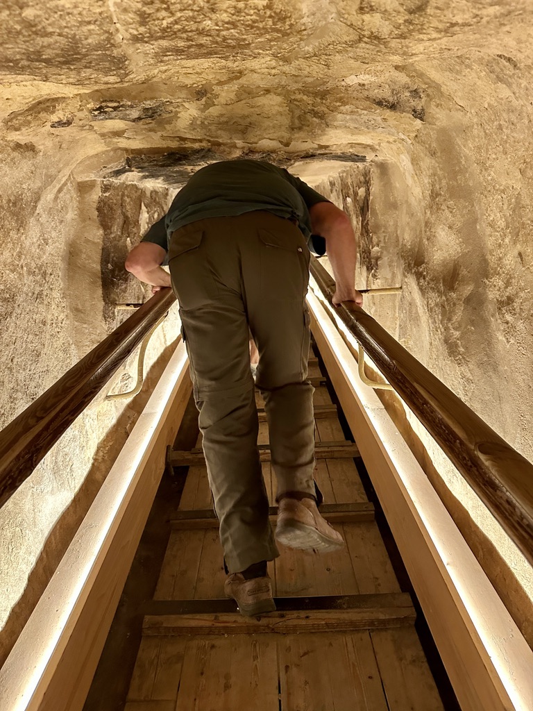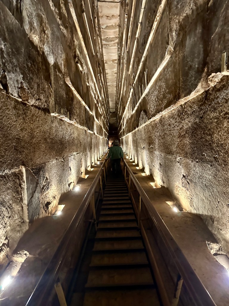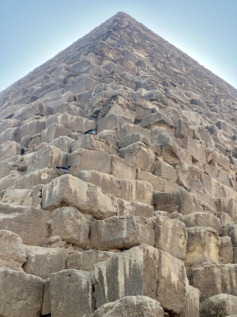 What’s the oldest of the Seven Wonders of the Ancient World, the only one that remains largely intact, and was the tallest manmade structure on Earth for nearly four millennia, until the Lincoln Cathedral was completed in 1311?  If you answered “the Great Pyramid of Giza,” you just finished reading the same Wikipedia article that I did.  I’m not sure why you were reading it; I did because I visited the Giza Plateau this morning and even crawled and clambered my way inside the Great Pyramid to Khufu’s burial chamber.