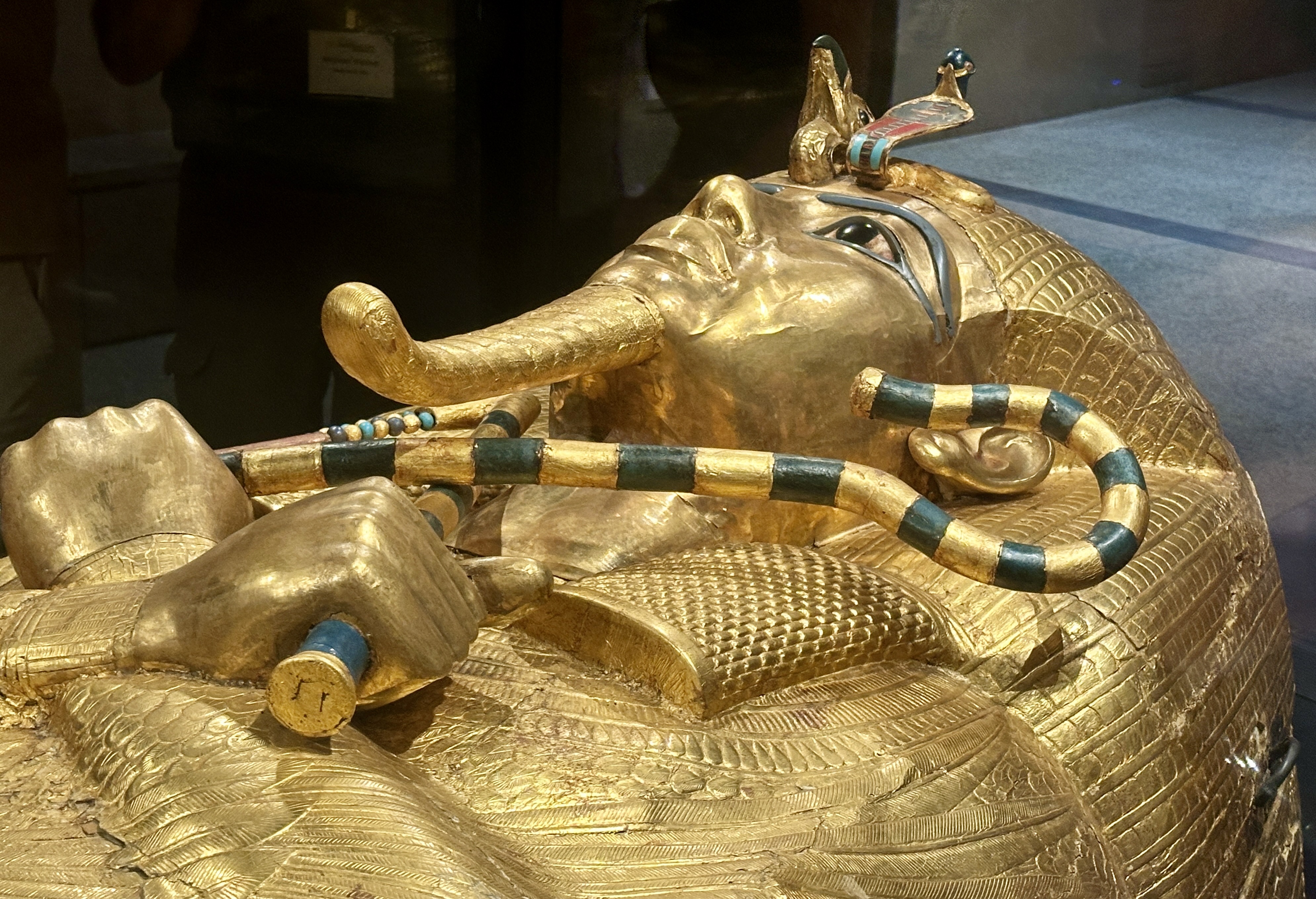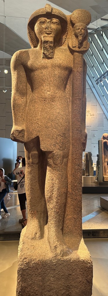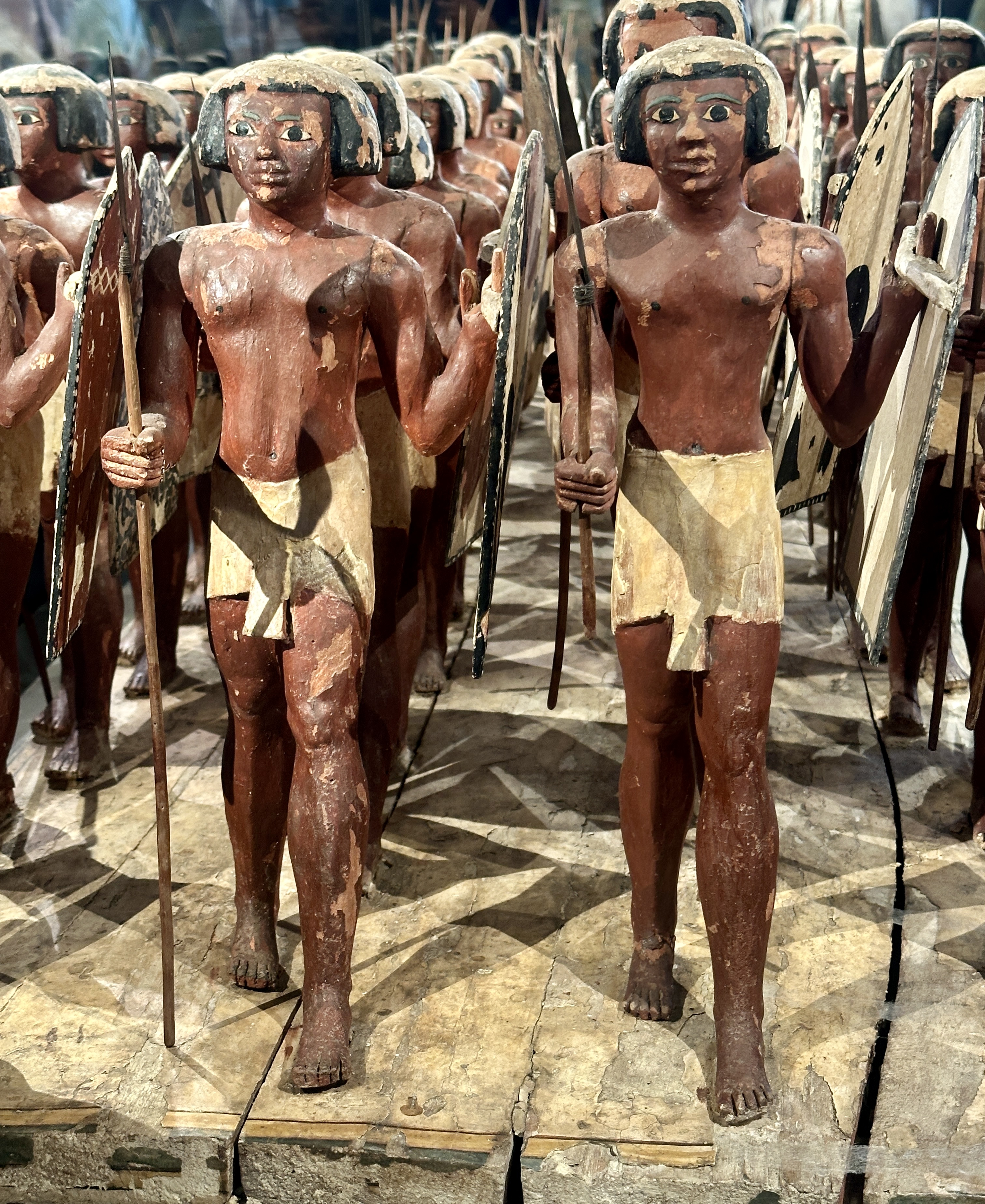 From the pyramid complex, it’s a short bus trip to the Grand Egyptian Museum.  The GEM had a soft opening last year.  Since then, the public has been able to view a staggering collection of artifacts from ancient Egypt, including massive statues, stela, coffins, and even an army of spear-carrying soldiers.