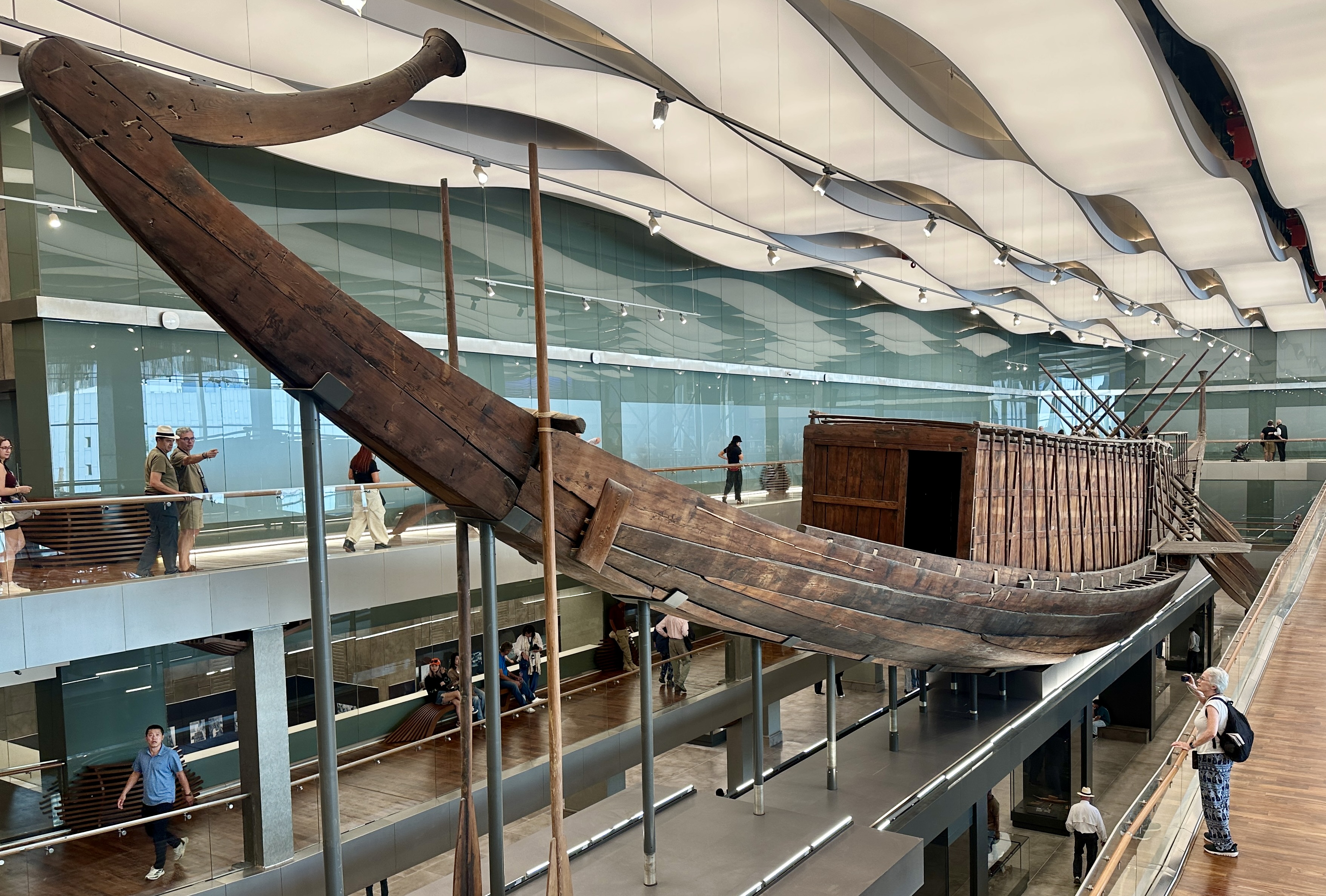 A separate building within the GEM complex, the Boat Museum, houses a boat that was buried near the Grand Pyramid to take Khufu to the heavens.  The boat had been carefully disassembled before it was buried – presumably the various statues of servants that would have accompanied Khufu in the pyramid would have put it back together.  Lacking statues of servants, a group of modern-day experts carefully preserved, reassembled, and transported the boat to its new home.